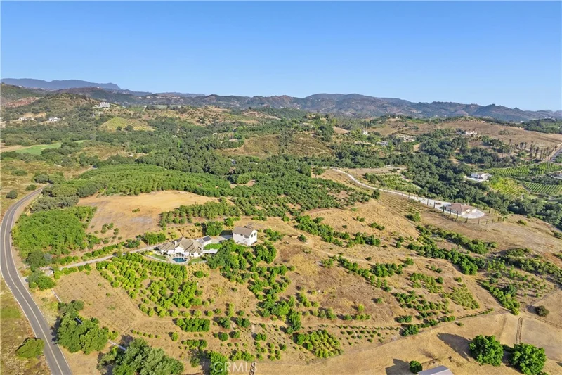 PRICE REDUCTION. This property is located on almost 10 acres in the desirable De Luz community with a 3963 sq.ft. main house plus a 1400 sq.ft. detached guest house. Both homes have amazing views and breathtaking sunsets including views of the local Cross Creek golf course. Other features include a swimming pool and spa, an organic avocado and citrus grove, family orchard, a huge RV garage and a great location with an easy drive to town. The custom built main home has 12ft. high ceilings in the entry with 10ft. ceilings throughout. Features throughout the main house includes wood flooring, custom quality crown molding,built in cabinets and was specifically designed to enjoy the views from almost every room providing lots of natural light throughout. The well designed kitchen includes a large island, granite countertops, newer appliances including double ovens and a sub zero refrigerator plus lots of cabinetry and storage and a walk in pantry. The comfortable family room features a custom built fireplace encased by built in cabinets on either side. The huge private master suite overlooks and opens to the landscaped fenced backyard and pool and spa area. There is a lovely separate formal living room and dining room plus an office with built in cabinets and book shelves. The 4th bedroom with an en suite bathroom is upstairs. Other features include a new water filtration system, newer AC units plus central vac system. The guest house was built in 2006. It features a living room, totally self contained kitchen, two bedrooms plus a full bathroom. It also has an outdoor enclosed living area with surrounding glass windows where you can enjoy amazing views and breathtaking sunsets.It has its own laundry facilities located downstairs in the 40x30 ft. RV garage that also has a workshop area and attic storage. The certified organic grove includes many newer trees including avocados, Kara Kara oranges, pink lemons, and pixi tangerines with almost 5 acres of land to plant a vineyard or add to the grove. Also enjoy a family orchard and vegetable garden including table grapes, lemons, berries, apples, peaches, plums, nectarines, pears, red and sweet onions and tomatoes. The property is completely fenced with a custom gate. A leased solar system for both homes. The main home has a 3 car garage plus there is lots of parking space. This property offers a great lifestyle and location close to the city of Temecula Old town and Wine Country to also enjoy.