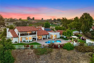 4,200+ SF Hilltop Estate with City and Canyon ViewsExperience sophisticated country living in this meticulously renovated hilltop sanctuary. Located in the prestigious De Luz community of Temecula, this nearly 5-acre estate blends contemporary luxury with panoramic views that stretch across rolling hills, verdant groves, and sparkling city lights.The Interior TransformationUpon entry, the grand foyer makes a striking impression with its reimagined spiral staircase. The layout is designed for both grand entertaining and intimate daily life, featuring a formal living room with a statement fireplace and a spacious family room overlooking the view and orchard. The chef's kitchen boasts expansive granite surfaces and premium appliances. The main level also features a secluded bedroom or executive office with a full bath, ideal for guests or a quiet workspace. Upstairs, the primary suite serves as a true retreat, featuring a private balcony overlooking thriving avocado and citrus groves, along with three additional bedrooms and two updated bathrooms. An Outdoor Oasis: the grounds have been curated for a resort-style experience. Enjoy sunsets from the custom hardscape patio or host gatherings under the charming gazebo in your spa with a fantastic view. The property is fully enclosed by classic 3-rail ranch fencing, maintaining the estate's clean lines and equestrian appeal. The 3-car garage is currently outfitted as a game room but remains easily convertible for the automotive enthusiast. Whether envisioned as a primary residence of distinction or a high-end short-term rental investment, this De Luz "unicorn" represents a rare opportunity to own a turnkey piece of the Temecula hills.