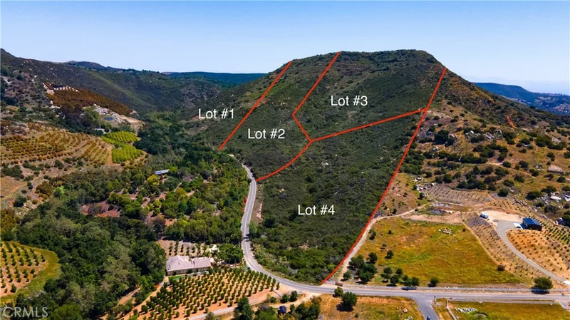 4 Parcels sold separate or together. Escape the ordinary and find your freedom in De Luz—Temecula’s hidden gem known for its rolling hills, ocean breezes, and peaceful, rural charm. Tucked among luxury estates, vineyards, and avocado groves, this is the perfect backdrop for your dream home, hobby farm, or private retreat. Located just a short drive from SoCal’s top wine country and within reach of both San Diego and Orange County, De Luz offers a rare blend of quiet seclusion and convenient access to city life. You have the option to purchase one, several, or all four neighboring parcels—each offering expansive acreage and endless potential: Lot #1: 12.54 acres offered at $199,000. Lot #2: 9.29 acres offered at $199,000. Lot #3: 14.17 acres offered at $209,000. Lot #4: 9.11 acres offered at $189,000. All 4 Lots Together: 45.11 acres for a total of $779,000. Whether you're dreaming of wide-open space, planning an agricultural venture, or just want to build your forever home in a setting that feels worlds away, this land offers the space and freedom to make it real.