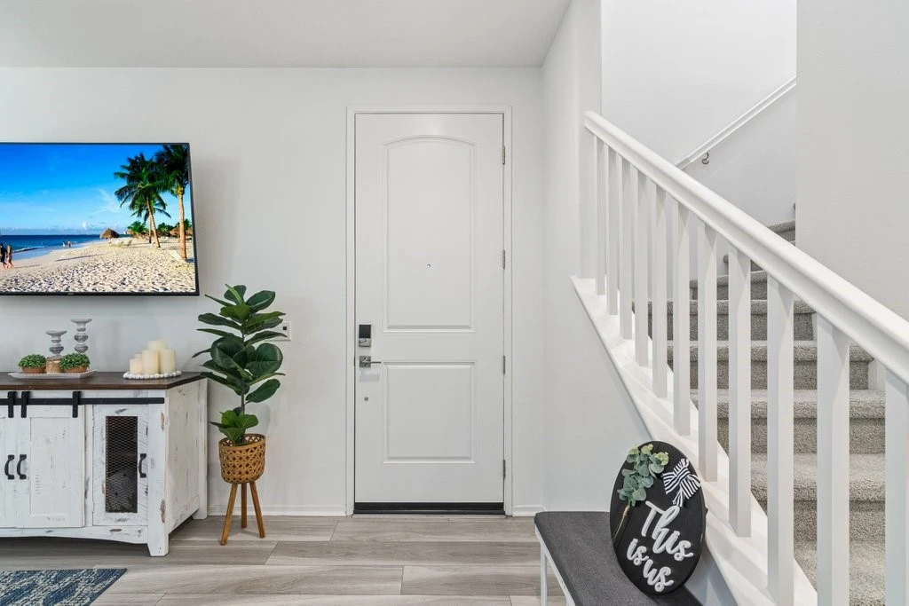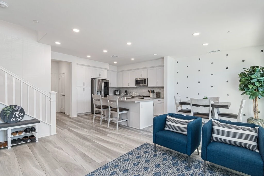 Corner lot 3 bedroom 2.5 bath plus a loft condo in the gated Rancho Soleo community of South Temecula. Beautifully updated with luxury vinyl plank floors downstairs. The kitchen boasts quartz counters, stylish back splash, shaker cabinets, single basin sink, and a pantry with roll out drawers. The sliding door has remote controlled blinds. Laundry upstairs. 2 car garage with overhead storage. Tankless water heater and fire sprinklers. Original owners with no pets. Minutes from shopping, freeway access, Pechanga, Birdsall park and Great Oak High School. In the award winning Temecula Valley Unified School District. Brochure in supplements has floor plans and development map.