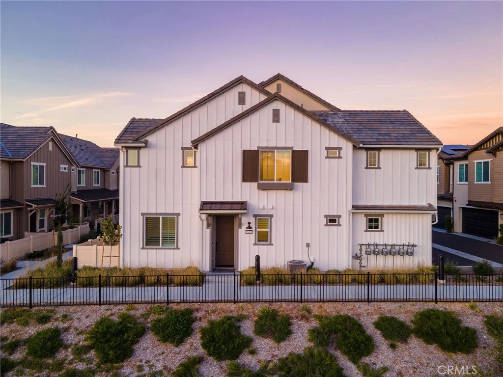 Located in Temecula’s highly sought-after Sommers Bend – Discovery Community, this rare end-unit residence is the largest model offered and one of the most private homes in the neighborhood. Showcasing a modern white farmhouse exterior, no street and no neighbors in front, and incredible unobstructed views, this beautifully upgraded 3-bedroom, 2.5-bath home with a spacious loft truly stands apart. Inside, natural light fills the home, highlighting modern finishes, thoughtful upgrades, and a clean, contemporary aesthetic designed for both comfort and style. The open-concept main living space flows effortlessly, anchored by a stylish living room fireplace that creates a warm and inviting focal point for everyday living and entertaining alike. The modern kitchen serves as the heart of the home, featuring sleek cabinetry, upgraded finishes, a walk-in pantry, and generous storage that makes the space as functional as it is beautiful. Custom plantation shutters throughout add timeless style, privacy, and exceptional light control. Upstairs, the loft offers flexible living space — ideal for a home office, media room, or additional lounge — while the bedrooms provide comfort and privacy with an open, airy feel. The primary suite serves as a peaceful and spacious retreat, thoughtfully designed for relaxation. The ensuite bathroom features a large walk-in shower, dual vanities, and an oversized walk-in closet, creating a private sanctuary that blends function with everyday luxury. Practical upgrades further elevate the home, including paid-off solar for energy efficiency and long-term savings, an oversized two-car garage with professionally installed storage, and electric vehicle charging capabilities for modern convenience. With no front-facing neighbors, enhanced privacy, and views that truly set it apart, this home presents a rare opportunity to own one of the most desirable residences in Sommers Bend. Residents enjoy resort-style amenities including pools and spa, a fitness center, clubhouse, sports courts, scenic walking trails, parks, and vibrant community gathering spaces — all just minutes from top-rated schools, Temecula Wine Country, shopping, dining, and convenient freeway access. This is a home you do not want to miss.