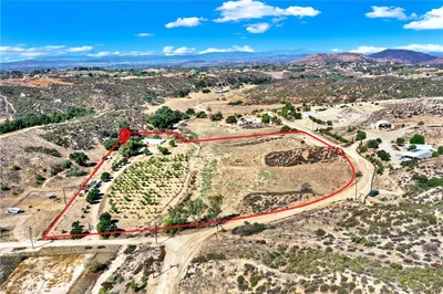 Unique Opportunity! 9+ acres, home on a hill with UNOBSTRUCTED VIEWS! Talk about getting away from it all! Originally designed to be a luxury weekend home, but living here full time would be an absolute dream! This property is a little East of Temecula's Wine Country and you will feel like you are totally away from the hustle and bustle. Private and secluded, but not too far from town. This home is stunning and can be expanded on. Stone work is gorgeous and the finishes inside the home feel like luxury. There is 1 bedroom and a small mini loft area that provides for a sleeping area with room for a full sized mattress or an elevated space to hide out and read or just relax. Custom tile shower with glass door. Stunning tile floors in the bathroom and laundry, which is in its own dedicated room. The kitchen is beautiful with lots of cabinet storage and has a spacious pantry. Upgraded countertops with a waterfall finish on the kitchen island. Farmhouse sink, 6 burner stove. Wood windows and sliding glass door. Wood ceiling beams. There are views from every window and from outside, you feel like you're on top of the world. Endless possibilities! Build onto the home, while living comfortably on site! Home is on a well, propane and septic. More than enough space for toys, animals and possibly another dwelling? The land and views are truly breathtaking! Don't miss out on this opportunity!