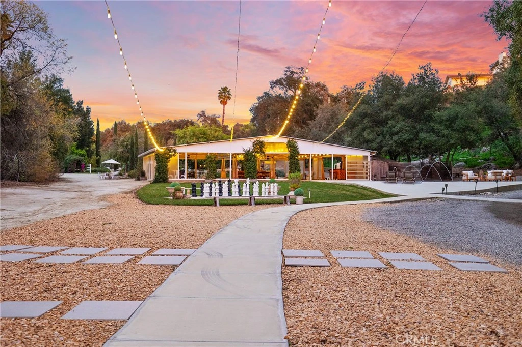 Set in the heart of Temecula Wine Country, just minutes from top rated wineries, this estate offers rare privacy, versatility & natural beauty across 6.33 acres. Established oak trees define the landscape, with a seasonal stream winding through the property & two walking bridges. The home is 3,552 sq ft & features 5 bedrooms & 3.5 bathrooms. The recently remodeled primary suite is a true retreat, showcasing a jetted spa tub, luxury shower with body jets & built-in speaker, a spacious walk-in closet with custom makeup vanity, ceiling fan, & expansive views of the surrounding oak forest. A guest bedroom offers a separate keyed entrance, en suite bathroom, & walk-in closet—ideal for visitors or multigenerational living. An upstairs bonus room provides additional space right off the bedrooms making it the perfect lounge area. The home is thoughtfully designed for comfort & efficiency, with ceiling fans throughout, a whole-house fan, dual-zone air conditioning with Wi-Fi-enabled controllers, whole-house vacuum, & a walk-in pantry. Additional spaces include an approximately 300-square-foot studio attached to the garage & a 575-square-foot indoor basement, neither included in the home’s square footage, as well as a second large basement with outdoor access & built-in storage. Major upgrades include an air-conditioning system replaced approximately five years ago & a newer water heater. A fully paid off solar system has consistently produced more electricity than the home requires. A koi pond with waterfalls & a footbridge sits around a manicured lawn, enhanced by a specialized filtration system that requires minimal maintenance. An approximately 1,800-square-foot air-conditioned barn with built-in speakers and a 3,000-square-foot pole barn with concrete floors and lighting provide exceptional flexibility for gatherings, hobbies, or storage. Market lighting & a saltwater pool with fountains create a resort-style atmosphere between the barns. With tons of flat space, usable acreage & existing infrastructure, the property also presents an excellent opportunity to be transformed into an equestrian estate, with lots of room for pastures, round pens, an arena, & additional equine facilities. This is a rare opportunity to own a private Wine Country estate that seamlessly blends natural beauty, thoughtful upgrades, & expansive, usable land in one of Temecula’s most desirable locations.