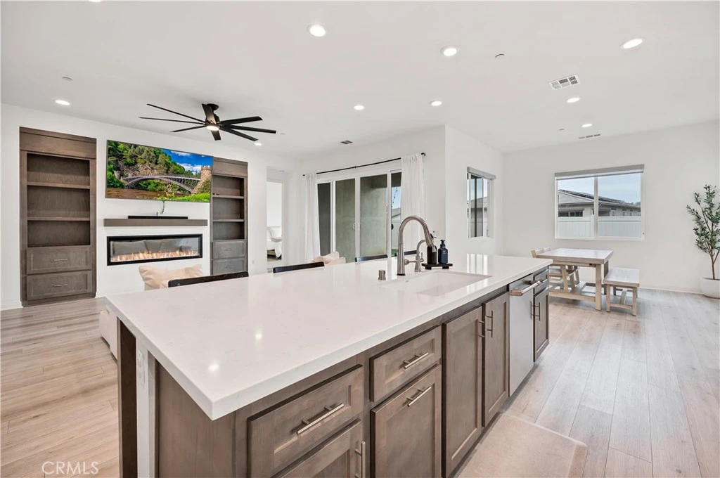 Welcome to life in the highly sought-after Sommers Bend community—where modern design, lifestyle amenities, and Temecula wine country living all come together. This beautifully designed single-story home offers the perfect blend of comfort, style, and functionality. From the moment you arrive, the nostalgic front porch invites you to slow down, unwind, and take in breathtaking sunsets that define Temecula evenings. Inside, you’re greeted by soaring ceilings and an expansive open-concept layout, where a grand kitchen and living room combination creates the ideal space for entertaining and everyday living. The chef’s kitchen is the centerpiece—featuring high-end stainless steel appliances, abundant cabinetry, and a seamless flow into the main living area. Custom built-in bookshelves and drawers elevate the entertainment space, while luxury vinyl flooring and ceiling fans throughout add both style and comfort. A versatile fourth bonus room offers flexibility for a home office, gym, media room, or guest space—adapting effortlessly to your lifestyle. Step outside and experience true indoor-outdoor living. The fully landscaped backyard with artificial turf is low-maintenance and thoughtfully designed, providing the perfect setting to relax or entertain. Enjoy peaceful evenings watching hot air balloons drift across the sky from your backyard, or start your mornings with coffee on the porch as the sun rises over the hills. Living in Sommers Bend means access to resort-style amenities, including an exceptional clubhouse, state-of-the-art fitness center, and resort-style pool. The community is designed for an active lifestyle, with walking and biking trails that connect you directly toward Temecula’s renowned wine country—just minutes away. This is more than a home—it’s a lifestyle defined by scenic beauty, thoughtful design, and one of Temecula’s most prestigious communities.