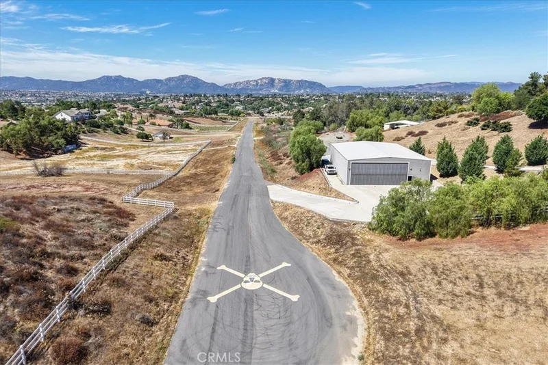 Fly-in convenience meets wine-country luxury with private airstrip* access and a 4,800 sq ft hangar. Perched on 7.36 acres of Temecula wine country, this single-story home offers convenience alongside luxurious living. Step inside through a gated entry to a grand foyer with soaring ceilings that opens to a great room featuring a floor-to-ceiling stone fireplace and vaulted wood-beam ceilings. The chef’s kitchen boasts granite countertops, a center island, separate breakfast bar and top-of-the-line stainless steel appliances. Panoramic orchard and mountain views frame the formal dining area. Retreat to the master suite with vaulted ceilings, a private fireplace and dual French doors leading to the landscaped backyard oasis. Enjoy a sparkling pool and spa, dual-sink vanity, jetted jacuzzi tub, large walk-in shower and his-and-hers closets. Three additional bedrooms include two en-suite baths and one versatile room currently used as a home office with its own private entrance. Beyond the home, aviation enthusiasts will love the covered storage adjacent to the hangar and the large, flat event area perfect for RVs, car shows or gatherings. A full-size lighted pickleball court and ample covered storage complete the outdoor amenities. With dramatic “360-degree” views, privacy and unparalleled access to a private runway, this rare Temecula property may never be matched. Schedule your private showing today and experience a lifestyle that combines luxury, recreation and aviation. You will NOT see a listing like this again… *Airstrip/Runway is private to the Homeowner's Association. *Seller will also consider a lease at $17,000/mo.