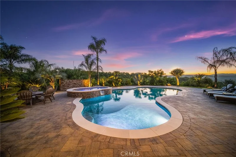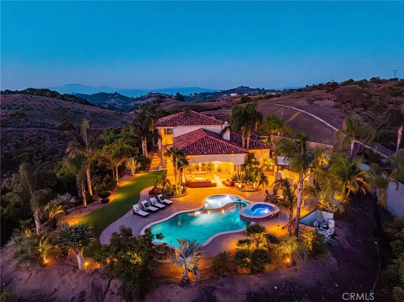 Discover unparalleled luxury and serene country living in this magnificent 4,498 sqft custom-built home, nestled on a secluded 4-acre lot. This architectural masterpiece boasts a GRAND electric gated entry and breathtaking views of the near by De Luz Hills, offering a perfect blend of elegance and functionality. Key Features: • Spacious & Modern Design: Soaring 10 ft ceilings throughout, with a grand 14 ft ceiling in the living room. French doors with Clearview screens ensure pest-free ventilation. • Gourmet Kitchen: Equipped with two Bosch dishwashers, Thermador double oven, microwave, and 6-burner stove for the ultimate culinary experience. • Luxurious Master Suite: Features two walk-in closets and a spa-like bath with three wide panoramic windows for natural light and stunning views. • Flexible Floor Plan: Includes two additional main-floor bedrooms connected by a Jack & Jill bathroom, a spacious office with a full bath, and a convenient guest half-bath. • Entertainment & Comfort: Surround sound system in the master suite, dining room, hallway, and grand room. Lutron Light System controls all exterior and select interior lights via smartphone app. • Outdoor Oasis: Enjoy a fairly new saltwater Pebble Tech pool with pool lights, an outdoor barbecue and island, and a spacious upstairs balcony showcasing spectacular forest views. • Oversized 7-Car Garage: Complete with custom cabinets and a utility sink for ample storage and convenience. • Whole-Home Upgrades: Electrolux central vacuum, whole-house water softener, conditioner, and filtration system, plus a 75-gallon Bradford-White gas water heater. Entire home re-piped with PEX two years ago. • Pest Protection: Taexx in-wall injectable pest defense system. • Agricultural Advantage: 360 Haas avocado trees with an agricultural water discount. This exceptional estate combines modern luxury with the tranquility of country living, all while offering premium features for comfort and convenience. Don’t miss the opportunity to own this one-of-a-kind Temecula retreat! Super close to Old Town Temecula and all of your favorite wineries & restaurants.