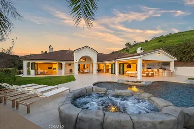 COUNTRY LIVING WITH INCREDABLE VIEWS ONLY 8 MINUUES TO THE FREEWAY, SHOPPING AND RESTAURANTs AND 15 MINUTES TO THE WINERIES. Beautiful 4 Bedroom 3-1/2 Bath 4,386 sq. ft. in the prestigious De Luz community of Temecula offers a light & bright home with an open feel. Breathtaking views city lights, views of Big Bear, Idyllwild & Palomar Mountain. Step through the beautiful double front doors, you'll notice the entire home is filled with natural light. Featuring elegant travertine flooring, a formal living and dining area with ceilings over 10 feet high. The home offers tall ceilings throughout including 8 foot doors throughout, wide hallways, 5 inch base boards, crown molding, beautiful coffered and tray ceilings. A spacious primary suite boasts 12-foot ceilings, French doors to the backyard, a luxurious bath with a walk-in shower, soaking tub, sitting area, large walk in closets and custom wood cabinetry. The gourmet kitchen is truly a chef’s delight, featuring granite countertops, custom wood cabinetry, stainless steel built-in KitchenAid refrigerator, dishwasher, double wall ovens & microwave including a professional grade Thermador stovetop on natural gas, a very rare find in De luz, wine fridge, a large island, and a walk-in pantry. The family room is open to the kitchen and is equally bright, featuring a cozy fireplace and a flexible adjoining room that can serve as a media or game room. The kitchen, eating area and family room are lined with windows to enjoy the views. The 3 secondary bedrooms are very spacious with two of the bedrooms offering walk in closets and a jack in jill bathroom. The third bedroom boasts a private ensuite bathroom and bedroom with private entrance and patio area would be a perfect multi-generational living. Outside is the perfect with an relaxing entertaining area with a TV, & fireplace. Enjoy a large, built-in barbecue entertaining area with a flat top gill, built-in BBQ, sink and sitting area. An outdoor fire pit, providing the perfect setting to take in those magnificent mountain & city views. With travertine flooring through out the home and new luxury vinyl plank flooring in the bedrooms, enjoy no carpet in the home. The oversized three-car garage is extra deep and could be converted into a ADU. This home is a perfect blend of elegance and functionality. There is room to build another garage, ADU and pool. Home is private and perfect location to enjoy walks or biking with no car traffic.