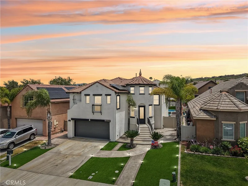 Welcome to this extensively upgraded pool home in the desirable Chelsea Estates community of South Temecula. Offering 3,717 square feet of beautifully designed living space which includes a private movie theater (could be converted to a 5th bedroom). From the moment you arrive, the freshly painted exterior, new garage door, and pristine curb appeal set the tone for what awaits inside. Step through the front door to discover a completely refreshed interior featuring all-new flooring throughout, including luxury vinyl plank, marble, and tile, complemented by new baseboards, crown molding, plantation shutters, and designer light fixtures. At the heart of the home is the recently remodeled chef’s kitchen — thoughtfully designed with white shaker cabinetry, quartz countertops, a farmhouse sink, custom tile backsplash, new stainless steel appliances, and a statement vent hood. The open layout flows seamlessly into the family room, highlighted by a stunning stacked stone fireplace, creating the perfect space for gathering and entertaining. The bathrooms have been tastefully remodeled with modern finishes, offering spa-like comfort throughout. A recently replaced HVAC system, tankless water heater, whole-house water filtration system, and an expansive paid-for solar system with Tesla charger provide outstanding energy efficiency and long-term savings. Step outside to your private backyard retreat. Enjoy new artificial turf, a fully equipped outdoor kitchen, and a sparkling pool featuring new tile and newer pool equipment — ideal for relaxing or hosting unforgettable summer gatherings. The finished garage includes epoxy flooring, adding both durability and style. Located just minutes from top-rated schools, award-winning wineries, premier golf courses, shopping, dining, and Pechanga Casino, this exceptional Chelsea Estates home offers the perfect blend of upscale living and everyday convenience.