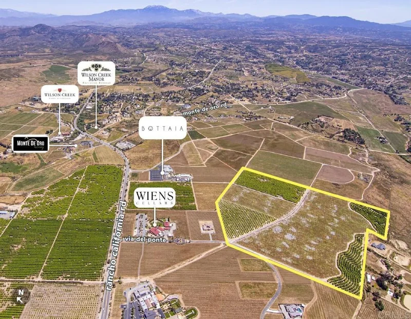 The subject property is approximately 64.63 acres of agricultural land located along the renowned Winery Row in Temecula Valley Wine Country. This property is currently operating as a 23-acre grapefruit grove. There are currently three varietals, including 10 acres of Ruby Red Grapefruit, 7 acres of Star Ruby Grapefruit and 6 acres of Flame Grapefruit. Permitted uses include vineyards, groves, bed & breakfast, hotel, day spa, single family home development and more.