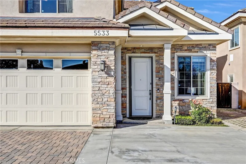 First time offered to the public! Built in 2015 by Sun Homeland, this south-facing single-family detached PUD is located in a gated community and offers a prime location close to restaurants, shopping, and convenient freeway access. This spacious 4 bedroom / 3 bathroom home is filled with natural light and refreshing breezes. The home features a fireplace in the living room, formal dining area, downstairs guest bedroom, upstairs family room, and a luxury oversized primary suite large enough for a king-size bed. The primary bathroom is beautifully appointed with a 6-jet spa tub, frameless shower, dual vanities, and a separate toilet room. The designer kitchen is a must-see—fully equipped with stove, oven, dishwasher, garbage disposal, custom cabinetry with soft-close drawers, quartz and imported tile countertops, and a matching glass tile backsplash. Additional upgrades include wide-plank rich wood flooring, recessed lighting, crown molding, and a decorative hand railing that enhances the home’s elegant interior. Enjoy excellent privacy with a 20-foot-wide driveway, plus assigned guest parking for each unit, creating extra space and distance from neighboring properties. The home also offers a private fenced yard, perfect for relaxing or entertaining.
