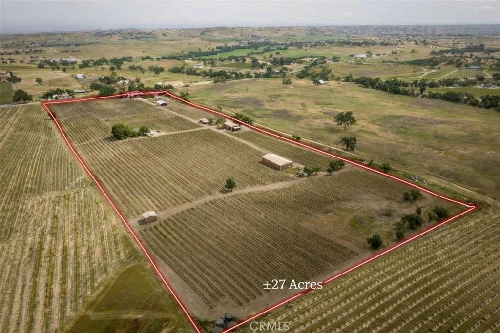 Create your own legacy in Paso Robles wine country with this rare opportunity to own a fully operational vineyard and winery estate set across 27 scenic acres in the heart of the El Pomar District of the Paso Robles AVA. The 27.3 acre property features 16.89 acres of mature Cabernet Sauvignon and Cabernet Franc vines, producing premium fruit in one of California’s most sought-after wine regions. The winery is licensed for 5,000 cases of annual production and includes extensive winemaking and vineyard equipment, providing a strong foundation for a new or expanding wine program. Included in the sale is approximately 11,000 gallons of Cabernet Sauvignon and 420 gallons of Cabernet Franc currently aging in barrel. Wine labels, brand rights, and case goods are not included. Improvements include a 3,000 sq ft winery production facility, a 2,200 sq ft tasting room expansion, 3,200 sq ft warehouse, 1,800 sq ft shop, 1,600 sq ft equipment storage building, and a 2,400 sq ft barrel room. The property is supported by two agricultural wells and six 2,500-gallon water storage tanks. A 2,200 sq ft residence overlooks the vineyard with sweeping views of the surrounding countryside, offering the perfect blend of wine country living and a working estate. An additional hilltop building site provides the potential for a future custom home with breathtaking panoramic views. The current owner is in discussions with the county regarding the potential development of ADU-style vacation rentals on the property. Plans have also been explored for short-term rental or Airbnb-style units, presenting additional income and hospitality opportunities (buyer to verify). With its prime Paso Robles location, established vineyard, production facilities, and expansion potential, Hansen Vineyard & Winery presents an exceptional opportunity to build and expand your presence in California wine country.