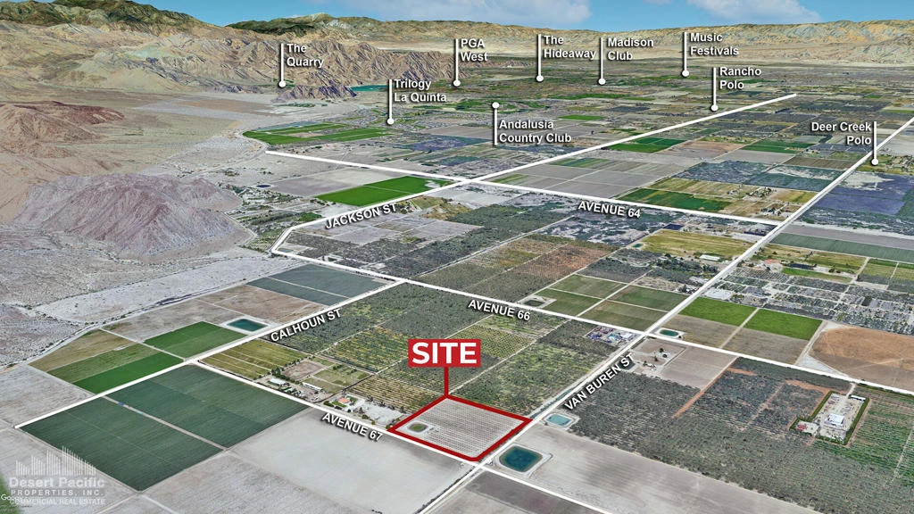 Just 7.5 miles from Coachella Music Festivals. Organic lemon ranch with 910 lisbon lemon trees. Rare opportunity to purchase a 9 acre parcel in desirable Vista Santa Rosa, an area surrounded by many equestrian estates and high-end country clubs. One mile from the acclaimed Ladera Golf Club, named Best New Golf Course by Golf Digest. 4.5 miles south of Desert International Horse Park. In Opportunity Zone, providing potential tax incentives. Oversized reservoir. Underground irrigation system. Easy access to Expressway 86. Brochure can be downloadable in the 'Document' tab.