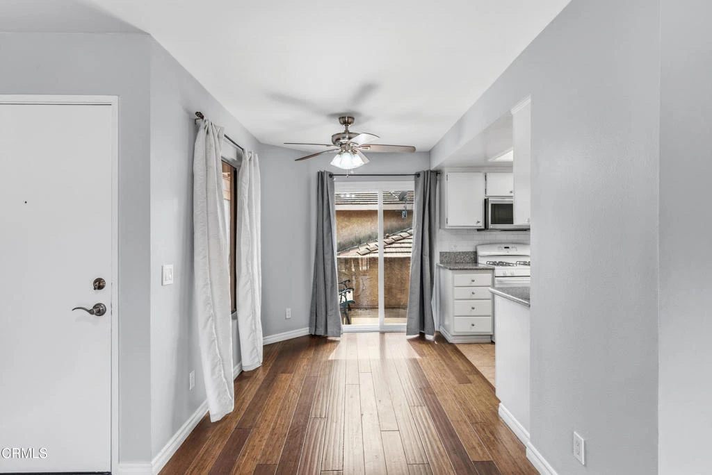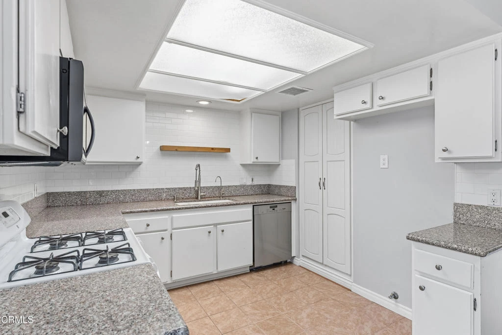 This tucked away upper-level condo in downtown Thousand Oaks offers a functional layout, spacious interiors, and privacy. The open-concept living and dining area features wide plank wood flooring, neutral tones, and sliding glass doors that lead to a private balcony, ideal for morning coffee or evening unwinding.The kitchen is bright and practical with ample cabinetry, granite countertops, and a skylight that brings in natural light throughout the day. Adjacent dining space connects seamlessly to the living area, creating an easy flow for everyday living or entertaining.Both bedrooms are generously sized with large closets, while the primary suite offers balcony views and added storage. The bathroom has been updated with clean, modern finishes for a fresh, move-in ready feel.Additional highlights include interior laundry area, recessed lighting, multiple storage options throughout and TWO assigned parking spaces. Located just minutes from shopping, dining, parks, and top-rated schools, this is an excellent opportunity for first-time buyers, or anyone looking for low-maintenance living in a central Thousand Oaks location.