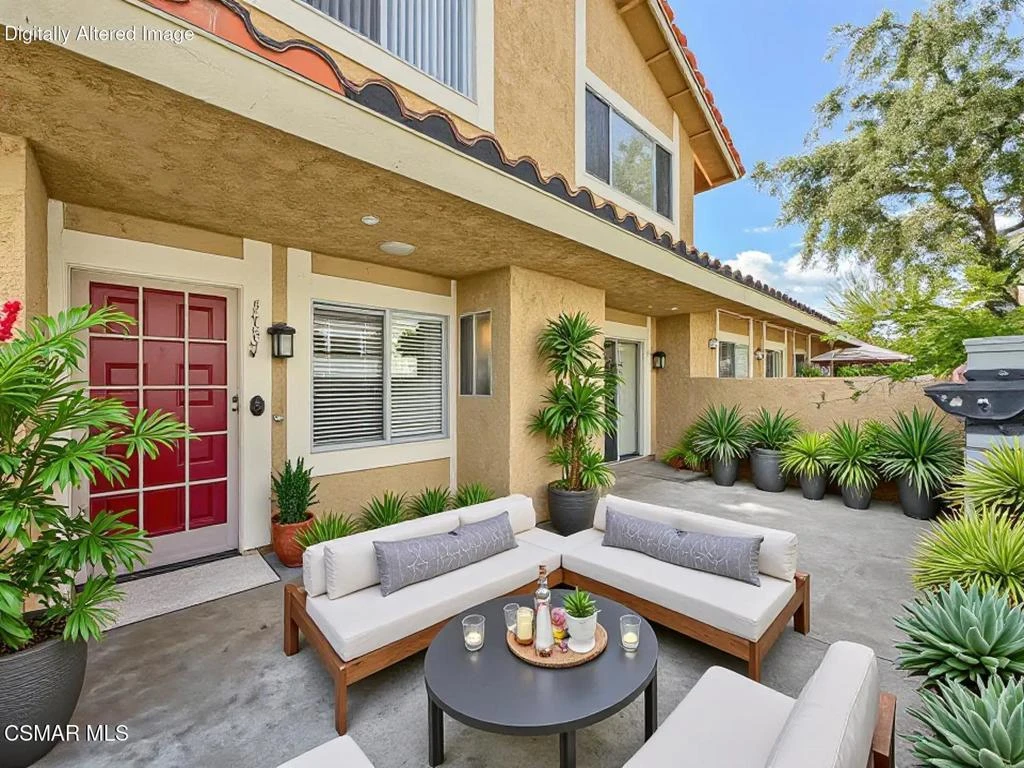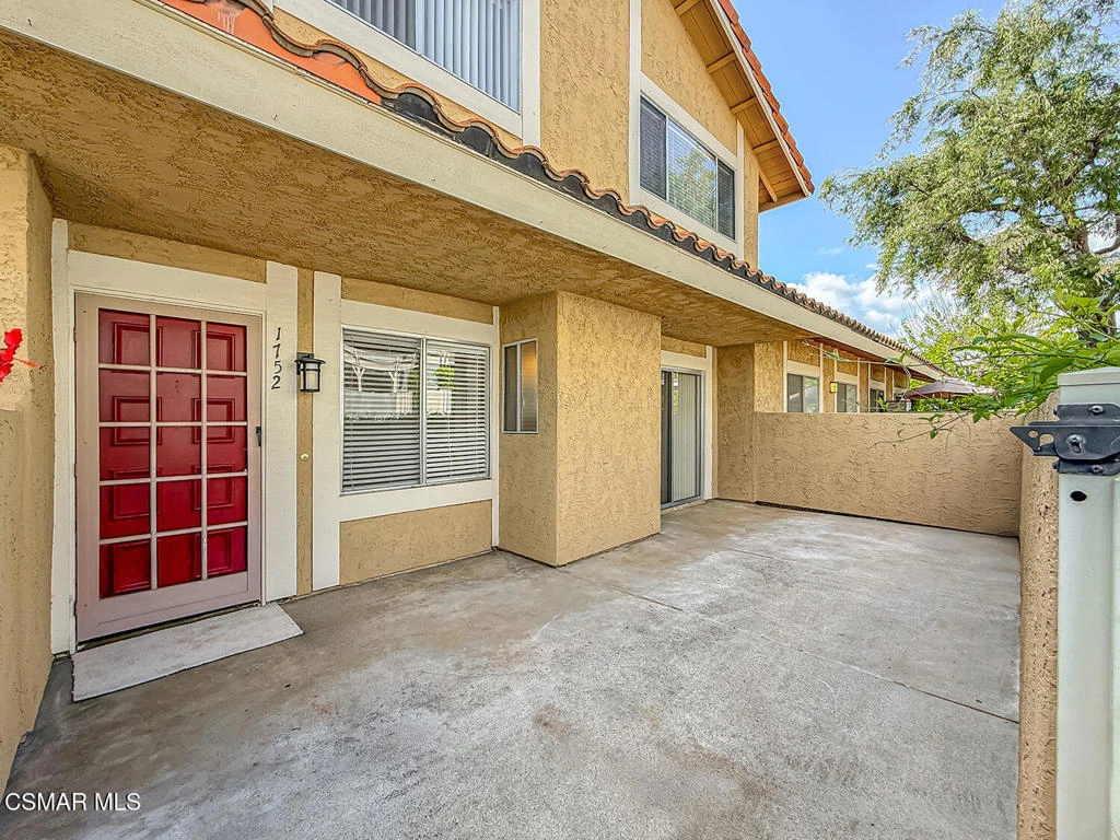 Upgraded Las Flores Villas townhome located at the END of the street--just one home away from the community Pool, Spa, and Tennis Court! This 2 bedroom, 2.5 bathroom home offers 1,188 Sq Ft of BRIGHT and inviting living with thoughtful upgrades throughout.The roomy front patio creates a tranquil setting for morning coffee or evening relaxation. Inside, the Entry introduces you to HANDSOME wide-plank vinyl flooring and upgraded baseboards that continue throughout the home. The Living Room is anchored by a charming brick-surfaced gas fireplace and highlights numerous recessed lights along with large treated windows overlooking the patio. The Dining Room sits just off the Kitchen and is FULL of natural light from sliding glass doors that open to the front patio.The Kitchen has been REMODELED with quartz-like countertops, modern shaker-style cabinetry, added recessed lighting, a large stainless-steel sink, and stainless-steel appliances including a 5-burner LG gas range with matching built-in LG microwave. A Powder Room downstairs features an upgraded vanity and ceramic tile flooring.Upstairs, the hallway continues the wood-like vinyl flooring and provides a CONVENIENT laundry area with stacked units. The Secondary Bedroom offers large windows and a long closet with sliding mirrored wardrobe doors. The SPACIOUS Primary Bedroom boasts a WALK-IN closet, upgraded flooring, and a REDONE en-suite bathroom featuring wood-like tile flooring, an upgraded granite-topped dual-sink vanity, and a separate water room with redone shower and sliding glass doors. The Hall Bathroom has also been refreshed with an upgraded granite-topped vanity, revamped tub shower, and ceramic tile flooring.Parking includes a DIRECTLY accessible single-car garage plus an assigned parking space. Additional highlights include SCRAPED ceilings throughout and a NEWER HVAC system.Las Flores Villas offers excellent community amenities including a glimmering pool and spa, a beautiful tennis court, and a large grass area. The home enjoys ACCESS to award-winning Conejo Valley Unified Schools, WALKABILITY to Los Cerritos Middle School, and CLOSE proximity to shopping at Gelson's, Vons, CVS Pharmacy, Fitness19 gym, and ACE Hardware, as well as the AMAZING Lang Ranch hiking and biking trails.