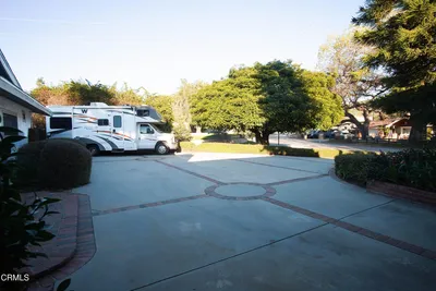 A must see one-story dream home in a quiet neighborhood with easy walking access to parks, library, senior center, and teen center. In addition to ample street parking, a long sweeping driveway with separate space for RV parking delivers you to a landing with plenty of room for private parking flanked by beautiful mature trees. This 1959 home was completely remodeled in 2013 and features an open floor plan with hardwood floors, slow-close kitchen cabinets, a vaulted wood-beam ceiling in the family room, a wall length slider that opens to a private oasis in the backyard with an orange tree, and central heating & air conditioning. The dining room also opens through French door sliders to the huge fenced backyard with a built-in BBQ and refrigerator with bar seating, three seating areas including one with a terracotta wood firepit, an in-ground pool & spa with waterfalls, and a detached pool cabana. The current owner added shutters throughout this home, new sink faucets, replaced the pool pump and filter, permitted an electrical panel upgrade to 200 amps, and recently installed a new bay window in the living room, new water heater, and new wall mounted family room 65' TV which stays with the house. The kitchen features granite countertops with an eat-in counter, a garden window overlooking the backyard, a stainless steel refrigerator, a brand-new stainless steel gas stove, and connects to a laundry room with a front load side-by-side washer and gas dryer which remain with the home along with all the kitchen appliances. The master bedroom features an oversized closet with mirrored doors and an ensuite bathroom with a granite countertop and travertine walk-in shower. The master also has convenient access to the backyard spa through a brand new slider being installed prior to close of escrow. This lovely, private, ranch style home is truly a gem.