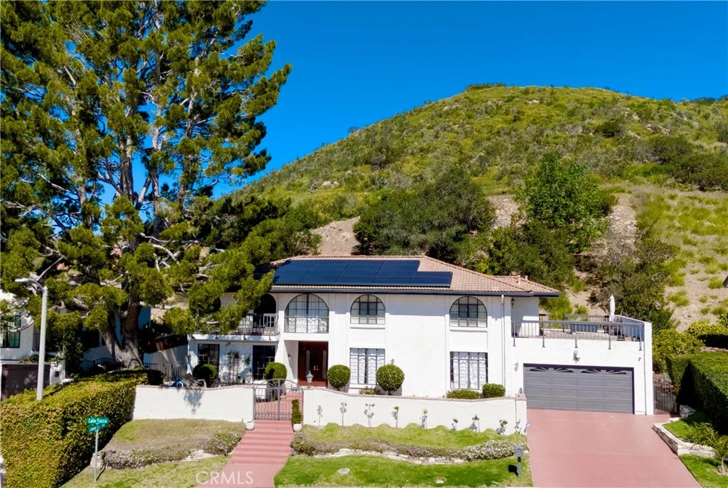 Nestled on a spacious lot in the heart of Lynn Ranch, 2044 Calle Yucca is a custom four-bedroom, four-bath residence that strikes a perfect balance between traditional warmth and modern efficiency. Upon entry, the home's character is immediately apparent through rich custom woodwork that flows throughout the main level. The formal living room, centered by a classic fireplace, is positioned to frame the surrounding hillside views, while the family room and dining area connect seamlessly to a kitchen equipped with stainless steel appliances and a large pantry. French doors lead from the heart of the home to a private, grassy backyard, creating an effortless transition for indoor-outdoor living. The upper level is thoughtfully arranged for privacy, housing all four bedrooms and three recently updated bathrooms. Two of these bedrooms serve as private suites with their own en-suite baths, including the primary retreat. Three of the bedrooms offer walk-in closets. A dedicated bonus room enclosed with French doors provides an ideal space for a quiet home office. Most of the second level takes advantage of sweeping mountain vistas and beautiful sunrise light. The home’s most distinctive feature is a large, walk-out rooftop patio accessible from both the backyard and the upstairs. This large terrace serves as an elevated sanctuary for morning coffee or evening entertaining against a backdrop of stunning natural views. Beyond its aesthetic appeal, the property is fully equipped for the future with a full solar array, Tesla Powerwall backup batteries, and an electric vehicle charger. Nearby to highly rated schools, hiking, and all of your modern conveniences, this home is perfectly positioned to enjoy the privacy and open-space access that define the Lynn Ranch lifestyle. Images may have been digitally edited or altered.