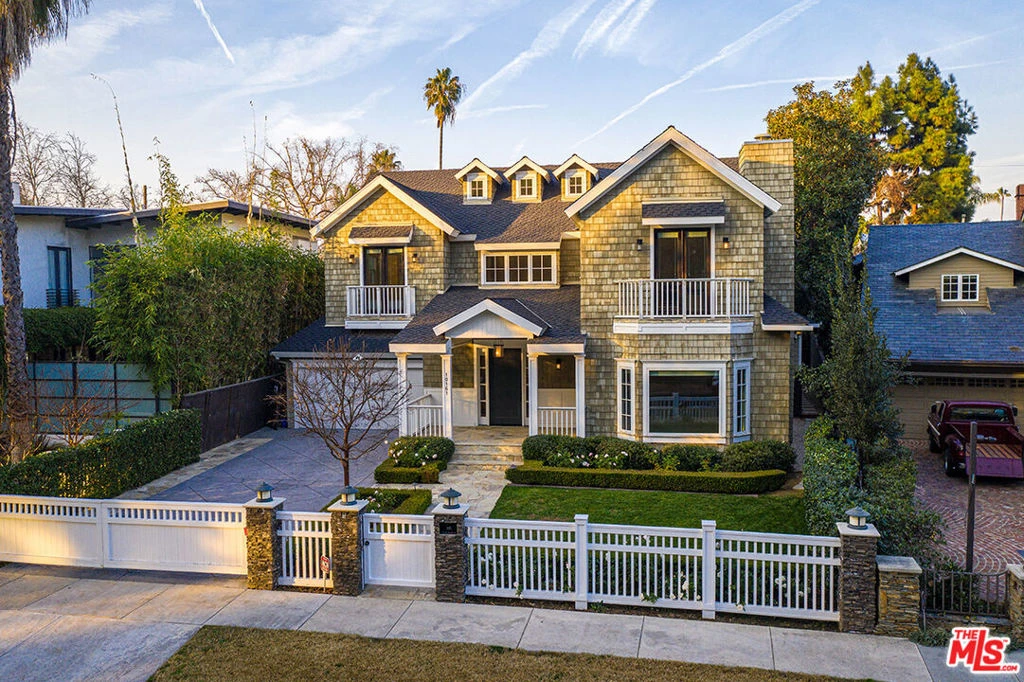 Nantucket showplace overlooking Lakeside Fairway! Designed with flawless craftsmanship and relaxed East Coast character. Airy bright interiors, bay windows & lush views. Light-filled entry boasts amazing 30' ceilings. Look for details such as beadboard, crisp panel work, crown molding, coffered ceilings and gleaming hardwood floors. Fireside great room open to chef's kitchen with gorgeous Cararra marble counters, s/s appliances, large island and built-in banquette. Butler's pantry with wine frig leads to separate dining room. Living room has Absolute Black granite fireplace. A home designed for entertaining! Upstairs, en suite family beds & baths. Master with sitting room, fireplace, dream walk-in closet and balcony. Downstairs, en suite/office or maid's with private entrance. Secluded outdoor retreat offers loggia with cozy fireplace for cool evenings, wet bar and sparkling pool/spa/waterfall. Security system inside & out. Frank Sinatra & Amelia Earhart called this lane home.