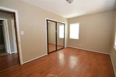 Spacious two-on-a-lot home feauring a spacious living room & dining area, beautiful wood/laminate flooring throughout, two remodeled bathrooms, and a galley kitchen with quartz counters, stainless-steel sink & extra cabinetry. The master bedroom has a private remodeled bath area and a large walk-in closet with closet organizers. Other features include drought-resistant landscaping, a deck off the back door, a separate laundry area and 2 finished garage spaces with additional parking. Water is included in lease; Tenant pays trash, gas & electric. Fridge can be provided if needed. This is a must see!