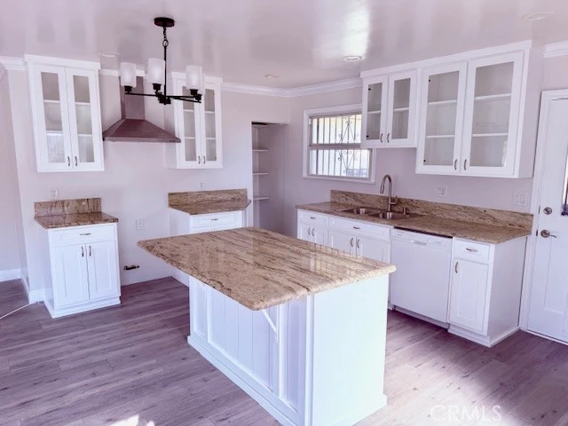 Charming 3 bedroom 1 bath home. Remodeled and ready to move in. Beautiful white kitchen with large island and granite countertops, open to the living room. One master bedroom and two secondary bedrooms. Tiled bathroom with shower in tub. Vinyl flooring, recessed lighting, crown molding, ceiling fans and double-paned windows throughout. Dishwasher and range hood included. Washer and dryer connections. Front yard and two assigned parking spaces in front of the house. Property is a duplex, no access to garage, no access to back yard. Must see!