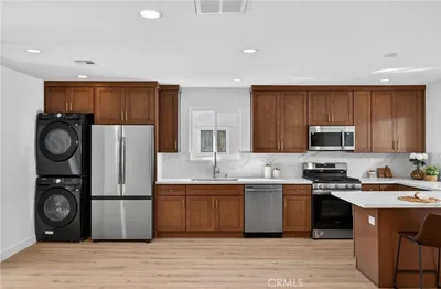 Fully remodeled and filled with natural light, 18901 Haas Ave offers a spacious and thoughtfully designed layout in a quiet Torrance neighborhood. This 4-bedroom, 2-bathroom home PLUS a dedicated office spans approximately 1,850 square feet on a flat 5,000+ square foot lot, delivering modern updates and flexible living spaces throughout. Inside, new wide plank flooring and energy-efficient windows create a bright and inviting atmosphere. The beautifully remodeled kitchen features rich wood cabinetry, light quartz countertops, and stainless steel appliances, opening to an oversized dining area that flows naturally into a step-down living room—ideal for everyday living and entertaining. Just off the kitchen, a generous office provides the perfect space for working from home or creative pursuits, while a convenient stackable laundry area includes a washer and dryer. The home’s layout offers excellent separation, with three bedrooms and a full bathroom located off the dining area, while the private primary suite sits just off the living room with views of the backyard. The oversized living room opens to a patio and a large, flat backyard—offering plenty of room for outdoor dining, play, or future possibilities. Additional improvements include a new roof, new windows, new HVAC, new electrical panel, and updated finishes throughout. Situated on a quiet horseshoe street with minimal through traffic, the home offers a peaceful setting while providing quick freeway access for commuters, along with close proximity to award-winning Torrance schools, shopping, dining, and less than five miles to the beach.