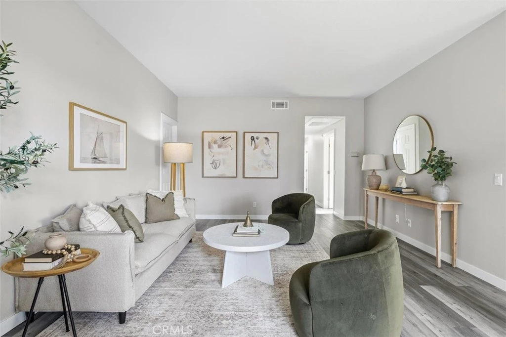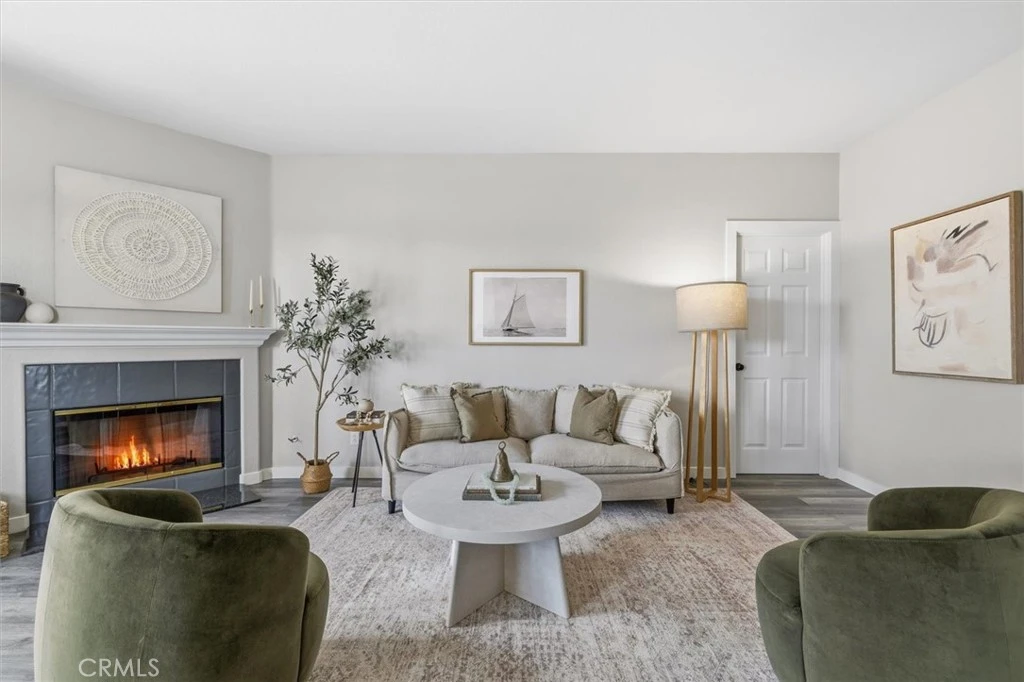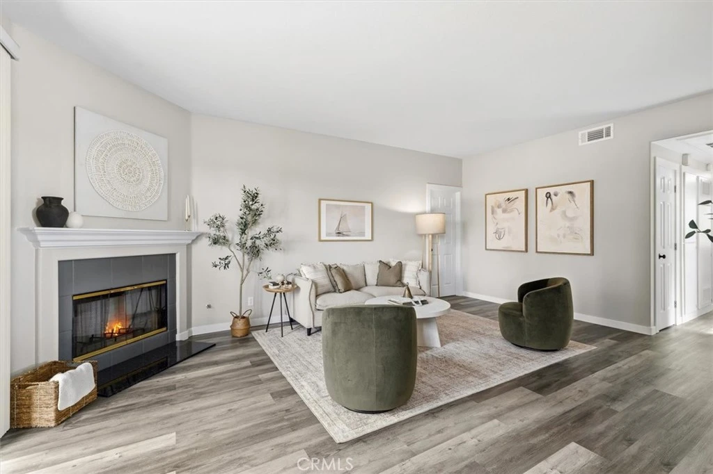 Remodeled and move-in ready, this spacious three-bedroom, two-bath condominium offers modern updates and comfortable living in a gated community. The home has been thoughtfully renovated with fresh interior paint, updated flooring, and numerous new upgrades throughout, including appliances, plumbing fixtures, toilets, cabinetry, sinks, and countertops in both the kitchen and bathrooms, along with new window coverings and screens. The inviting living area features a cozy fireplace and sliding glass doors that open to a private balcony, creating an ideal space for everyday living and entertaining. All bedrooms are generously sized. The primary suite includes two closet spaces and a remodeled en-suite bathroom with modern finishes. Additional highlights include central air and heating, in-unit laundry, and a well-appointed kitchen with all appliances included. The property also features a two-car tandem garage with ample space for additional storage. The gated community offers a community pool and guest parking for added convenience and enjoyment. Conveniently located near shopping, dining, major freeways, and a variety of local amenities.