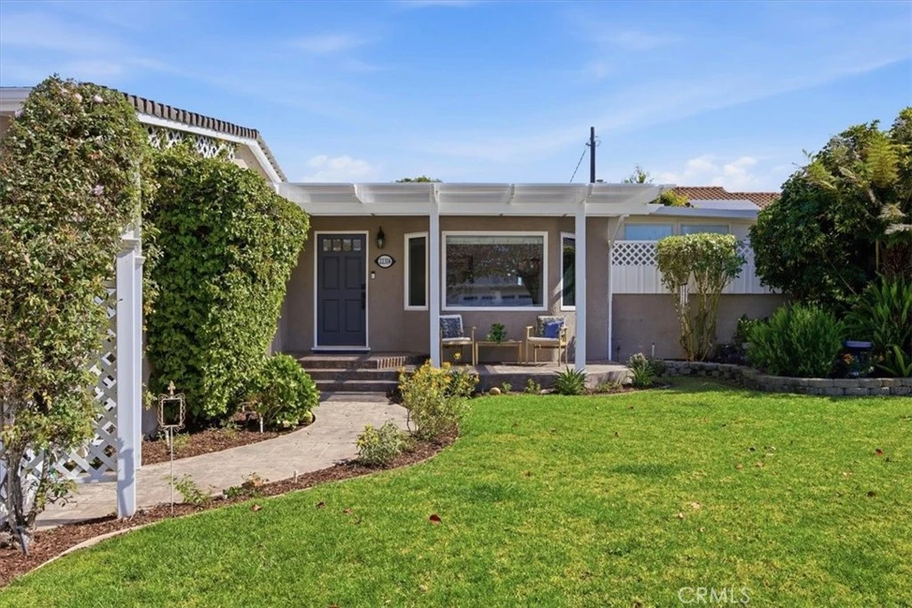 Nestled on a quiet cul-de-sac in highly desirable South Torrance, this beautifully updated home sits on an expansive 9,508 square foot lot, offering exceptional outdoor space rarely found in the area. Fresh interior paint and thoughtfully refreshed grounds create a crisp, move-in-ready feel with standout curb appeal. Enter through the charming arbor into a spacious front yard and welcoming front porch, framed by lush landscaping and inviting exterior lighting. Inside, the open concept living room impresses with vaulted ceilings, rich hardwood floors, and a striking fireplace that anchors the space. Designed for both comfort and entertaining, the custom kitchen features an impressive 6 by 7 foot center island, stainless steel appliances, a country-style sink, quartz countertops, custom cabinetry, and a statement hood, blending timeless style with everyday functionality. Conveniently located just off the kitchen, the finished, oversized garage offers epoxy floors, side-by-side laundry, and is wired for television, providing flexible bonus space. All bedrooms and bathrooms are privately situated down the hall. The primary suite also provides access to the backyard, adding an additional connection to the outdoor space and enhancing the home’s indoor-outdoor flow. Just off the living room, a sun-filled enclosed sunroom with elegant French doors opens to the true highlight of the property, the expansive backyard oasis. The newly landscaped rear grounds take full advantage of the generous 9,508 square foot lot, offering incredible versatility for entertaining and relaxation. A gazebo provides the perfect shaded gathering space, while an elevated deck with a spa jacuzzi creates a resort-style atmosphere accompanied with an outdoor shower. A winding stone pathway leads to a secluded detached office tucked beneath a magnificent pepper tree, ideal for working from home or creative pursuits. A large storage shed along the side yard adds even more functionality. Additional features include a 7.6 kilowatt solar system, air conditioning, and a tankless water heater for energy efficient modern living. Ideally located just steps from the Del Amo Fashion Center with abundant shopping and dining, and only three miles, approximately ten minutes, to the beach, this South Torrance property offers the perfect blend of space, privacy, convenience, and coastal lifestyle.