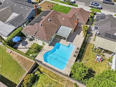 Located in the highly desirable Hickory Park neighborhood of Torrance, this beautifully maintained home combines thoughtful upgrades with comfortable indoor-outdoor living. Smooth ceilings and recessed lighting create a bright, modern feel throughout the main living areas, while updated flooring features laminate in the living and dining rooms and porcelain tile in the kitchen, laundry room, and bathrooms. Both bathrooms have been tastefully upgraded, including a remodeled southwest bathroom with new plumbing, a porcelain tub and shower, maple vanity, and granite countertop, and a renovated primary bath featuring a marble tile shower, maple vanity, a granite countertop, and updated plumbing. The backyard is designed for relaxation and entertaining, highlighted by a resurfaced fiberglass pool, solar pool heating system, stamped concrete pool deck, and a natural gas hookup ready for your BBQ. Mature mango and avocado trees (dwarf versions) also provide some fresh fruit each year. Whether hosting friends or enjoying a quiet evening, this private outdoor space is a true highlight. Numerous functional improvements add comfort and efficiency, including dual-pane windows, a newer living room sliding door, an HVAC system, an upgraded electrical panel with 220V service, a tankless water heater, and a solar attic fan. Plumbing upgrades include a dedicated kitchen sewer line with a new clean-out and epoxy-lined drain pipes. Additional features include attic storage with plywood flooring and lighting, updated front and backyard sprinkler systems with automatic timers, and a newer aluminum garage door with opener. The home is wired for DirecTV in the bedrooms and living room, with Spectrum internet service, and includes a Ring video doorbell and floodlight camera. The house is a 4-minute walk to Hickory Elementary School and a 5-minute walk to Hickory Park. This is a wonderful opportunity to enjoy the charm, convenience, and strong sense of community that make Hickory Park so special.