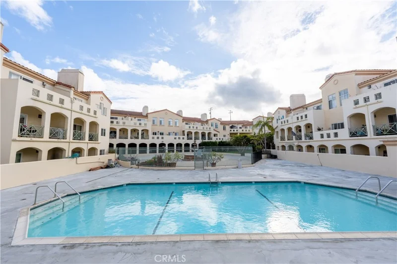 Welcome to resort style living in this end unit at Pacific Terrace. It’s a bright and inviting condominium featuring an open living and dining area, abundant natural light, recently updated laminate flooring, plantation shutters, upgraded double pane windows, stainless steel appliances, shaker style kitchen cabinets, quartz countertops, and soft close drawers. The oversized primary bedroom closet offers excellent storage, and the private balcony overlooks the pool and is perfect for relaxing. Enjoy resort style amenities including a pool, spa, sauna, fitness center, clubhouse and beautifully landscaped grounds, all in a convenient Torrance location near shopping, dining, and major freeways. Gated community with elevator access and assigned parking.