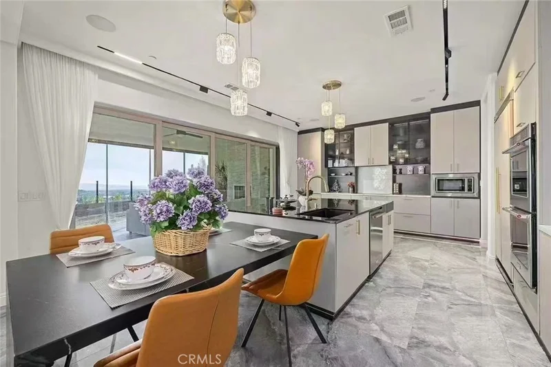 Presenting an extraordinary opportunity to own a breathtaking architectural masterpiece that redefines modern luxury. This newly constructed residence combines exceptional design with unparalleled craftsmanship, offering sweeping panoramic views that elevate the living experience. Nestled within the highly sought-after and secure gated community of Portola Hills, this home promises both privacy and exclusivity. Upon entering, you are welcomed by a grand, hotel-inspired central foyer adorned with upgraded marble flooring and custom exhibition cabinetry, all complemented by soaring double-height ceilings. The home’s thoughtful design includes a versatile downstairs bedroom and adjacent bathroom, ideal for guests or as a private home office.The chef’s kitchen is a culinary enthusiast’s dream, featuring premium cabinetry, stunning granite countertops, a spacious walk-in pantry, and a large center island. A second, fully-equipped kitchen further enhances the home’s entertaining potential, ensuring a seamless cooking experience for family and guests.Ascending the grand curved staircase, you are greeted by the opulent primary suite, which offers unrivaled views of the surrounding mountains and sunsets. The private balcony overlooks the enchanting City Lights Canyon and park vistas, providing the perfect setting for relaxation. The indulgent primary bath features a luxurious walk-in shower, a soaking tub, dual vanities, and two expansive walk-in closets, offering a spa-like retreat within the comfort of your own home. The California Room, an upgraded extension of the living space, serves as a light-filled sanctuary. With a cozy fireplace and four-panel sliding doors that open to the outdoors, this versatile room invites relaxation or elegant entertaining. The expansive backyard offers endless possibilities for outdoor living, with ample space for a custom garden, outdoor seating, dining areas, or the addition of a pool and spa. Additional features include no Mello Roos, a low tax rate, and a low HOA, making this home an exceptional value. Located near top-rated public schools, this community provides resort-style amenities, including a pool, spa, BBQ area, dog park, clubhouse, playground, hiking trails, and a party pavilion. With shopping, dining, and entertainment options just minutes away, this home offers the perfect balance of luxury, convenience, and tranquility.