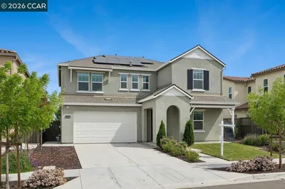 Welcome home to space, comfort, and versatility in this beautifully designed two-story residence tucked away at the end of a quiet cul-de-sac. Offering 5 bedrooms, 3 full bathrooms, including a full bedroom and bath on the main level, this home is ideal for multi-generational living, guests, or a private home office. Step inside to soaring ceilings, abundant natural light from high ceiling windows, and details such as the wood banister and plantation shutters. This floor plan flows effortlessly, with a warm and inviting family room featuring a wood-burning fireplace—perfect for cozy evenings. The spacious kitchen with island overlooks the dining area and family room, creating a true heart-of-the-home feel. Two sliding glass doors lead directly to the patio and backyard, making indoor-outdoor entertaining a breeze. Enjoy views of the pool from the front LR, DR, and kitchen, adding to the home’s open and connected ambiance. A 3-car garage for added convenience & storage. The backyard offers space to relax, entertain & play, complete with a dedicated dog run. Located just steps from a neighborhood playground, with no HOA, this home offers both privacy and community in a highly desirable setting. A great location—this is one you won’t want to miss!