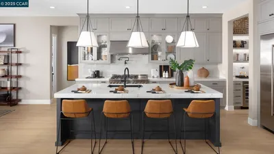 No HOA! Welcome to 310 Ashlee Avenue Mountain House where elegance and tranquility meet. At the heart of this stunning home lies a Zen-inspired courtyard with lush palms a soothing water feature and string lighting that turns evenings into something magical. Step inside to find luxury vinyl plank flooring fresh interior and exterior paint and a custom sliding barn door creating a peaceful home office retreat. The grand living and dining area boast soaring ceilings and abundant natural light while the gourmet kitchen offers refinished cabinetry modern hardware, and stainless steel appliances opening to a cozy family room ideal for relaxing or entertaining. A full bedroom and bath on the main level offer convenience for guests or multi-generational living. Upstairs a bridge walkway overlooks the open living space and leads to two guest bedrooms, a full bath, and a luxurious primary suite with dual sinks, soaking tub separate shower, and walk-in closet. Set on a spacious 8,500± sf lot with no rear neighbors, the backyard features a lawn and patio ideal for gatherings or quiet reflection. The single-car garage has been beautifully converted into an office or mini theatre, while the main two-car garage remains intact. Solar panels add efficiency and value.