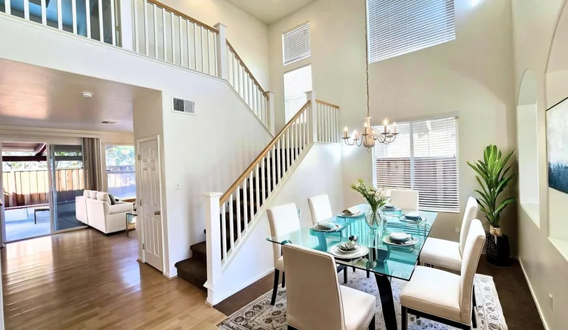 Well maintained two story home in Central Tracy. Step into a bright, open-to-below entry that creates a strong first impression. The high ceiling brings in natural light and gives the home an open, airy feel. This design adds a sense of space and connects the entry seamlessly to the upper level, making the home feel larger and more welcoming. Offering 3 bedrooms, 2.5 bathrooms, first floor den/office plus a large loft upstairs, ideal for media room or additional living space. All bedrooms are generously sized, including a private primary suite with an attached bath. The home features a finished front and backyard, designed for low maintenance and everyday enjoyment. Conveniently located close to shopping centers, restaurants, parks, and with easy freeway access, making daily commuting and errands simple. A strong choice for a primary residence or long-term investment. The house photos are virtually staged.