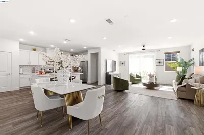Stunning North-East facing corner home filled with natural light and thoughtfully designed for modern living! Offering approximately 2,313 sq ft on a spacious lot, this exceptional 4-bedroom, 3-bath residence features a highly desirable open floor plan with a full bedroom and bathroom on the main level—ideal for guests or multi-generational living. Perfectly positioned on a premium corner lot with no homes on three sides, this property provides rare privacy along with a bright, open feel throughout. Enjoy abundant sunlight streaming in from afternoon to evening, creating a warm and inviting ambiance in every room. Beautifully upgraded with high-end finishes, this truly one-of-a-kind home stands out from the rest. Benefit from energy savings with fully paid solar, while the fully finished front and backyard offer the perfect space for entertaining, relaxing, and enjoying outdoor living year-round. Community amenities include a sparkling swimming pool—perfect for warm summer days—along with nearby parks and recreation. Ideally located with easy access to major freeways, shopping, dining, and everyday conveniences. Low HOA! A perfect blend of comfort, style, privacy, and location—this is a home you don’t want to miss! Open Saturday and Sunday 1 to 5PM.