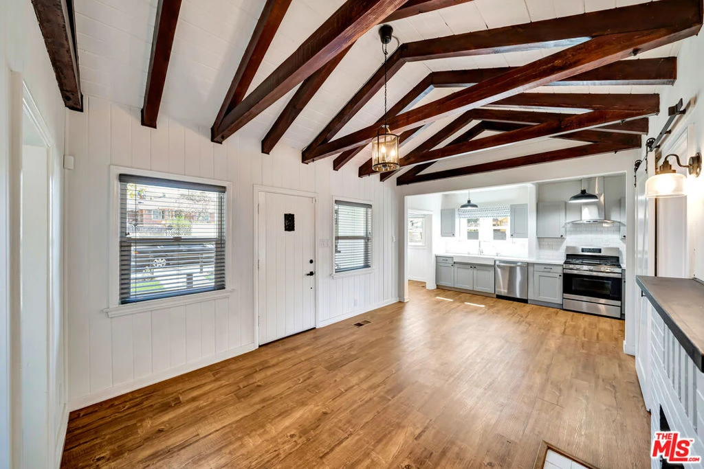 Welcome to this charming, beautifully updated 2-bedroom front house offering 949 sq ft of warmth and character. Step into a bright living room featuring vaulted wood-beamed ceilings and a functional gas fireplace, creating a cozy and inviting atmosphere. The open-concept kitchen includes a refrigerator, oven, microwave, dishwasher, water osmosis purification system, and ample cabinet space. A cozy, versatile bonus space near the entry is perfect for a home office, exercise area, or a breakfast nook with views of the landscaped front yard. At the end of the kitchen, you'll find a convenient in-unit washer and dryer, along with natural light streaming in from backyard-facing windows. A step-down den provides the perfect relaxing space for a TV room, with French doors leading to a private backyard retreat. Enjoy outdoor living at its finest with a patio, a built-in BBQ, and a well-maintained lawn surrounded by fruit trees. An herb garden along the side of the house is perfect for those who love to cook their homegrown vegetables. Extra storage is available in the basement. Central A/C and heating ensure year-round comfort. Shared driveway parking with back house tenants, plus street parking is available. Water is included; the tenant is responsible for electricity, gas, and other services. Minimum 12-month lease. Nestled in a peaceful neighborhood with nature views while still being close to shopping, dining, and public transportation. Don't miss out on this charming rental. Schedule your private tour today!
