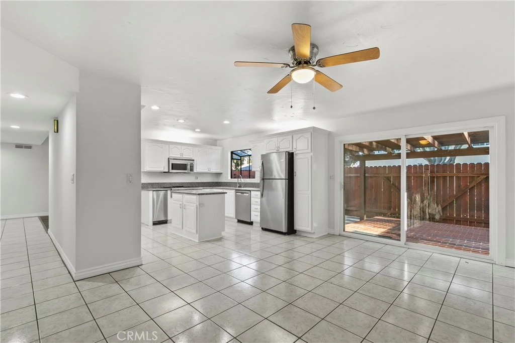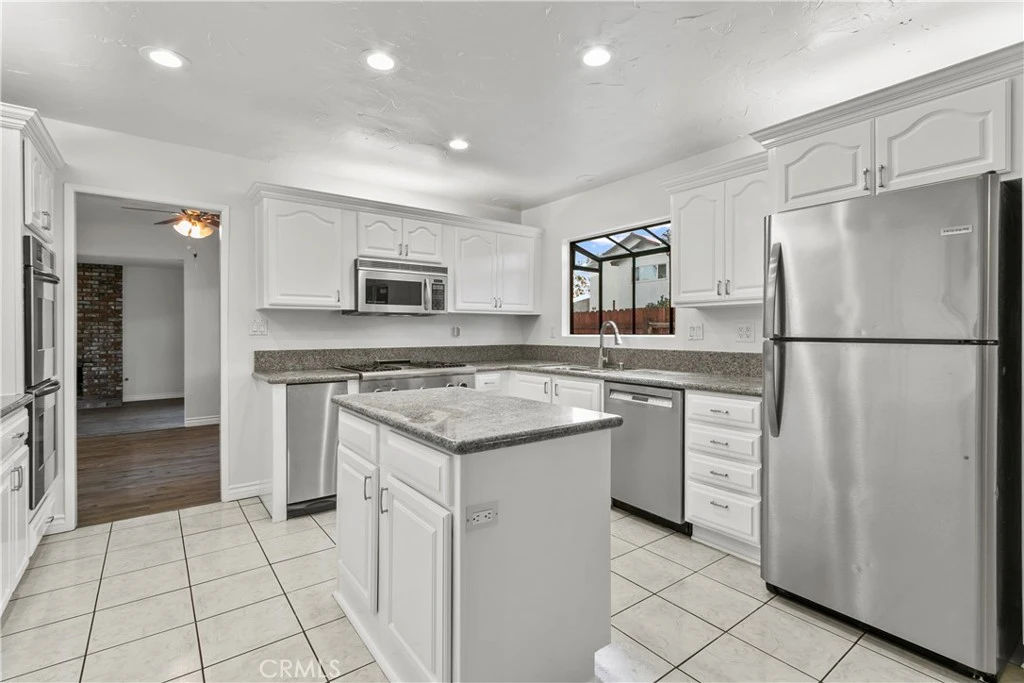 Welcome to this spacious, detached single-family home ideally situated in the heart of Tustin, offering amenities, including a community pool, expansive greenbelt, park, playground, and basketball hoop. Freshly repainted interiors and newer wood-style vinyl plank flooring create a clean, modern feel throughout. The inviting living room features a cozy fireplace, perfect for relaxing evenings at home. The generously sized kitchen comes complete with an island and a full suite of stainless steel appliances—including double ovens, gas cooktop, trash compactor, microwave, dishwasher, and refrigerator—all included for added convenience. Sliding glass doors from both the living room and kitchen lead to an enormous, privately enclosed backyard patio, ideal for entertaining with ample space for a grill, fire pit, and outdoor dining or lounge furniture. Bedrooms are comfortably sized and include ceiling fans, while central air conditioning ensures year-round comfort. Additional highlights include an indoor laundry room, an attached two-car garage with extra storage, and a thoughtfully designed layout that blends comfort and functionality. Located just steps from Pine Tree Park and minutes from The Marketplace and the 5 Freeway, this charming community offers the perfect balance of tranquility and accessibility.