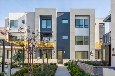 RARELY on the market! Experience refined living in this exceptional 2 years new townhome in Luna at The Landing at Tustin Legacy—an award-winning community honored with the 2023 Platinum Award for Best in American Living by the National Association of Home Builders. Ideally located in the heart of Orange County, this residence offers one of the best values in the community and is just moments from "The District". This thoughtfully designed home features three bedrooms and three-and-one-half bathrooms, including a desirable first-floor bedroom suite—ideal for guests or multigenerational living. The open-concept main level showcases a gourmet kitchen centered around an oversized quartz island with bar seating, flowing seamlessly into the dining and living areas. Luxury vinyl plank flooring, custom window treatments, and designer lighting enhance the stylish interior. The spacious primary suite offers a spa-inspired walk-in shower and generous closet space. Additional highlights include reverse osmosis water system, smart home features, a private two-car garage with a tankless water heater, water softener, and Tesla charger. Residents enjoy resort-style amenities including a pool, clubhouse, firepit, and BBQ areas. The home is also conveniently located near an exceptional elementary school and a magnet middle and high school (grades 6–12). Blending modern elegance, award-winning design, and a prime Orange County location, this home presents a rare opportunity.