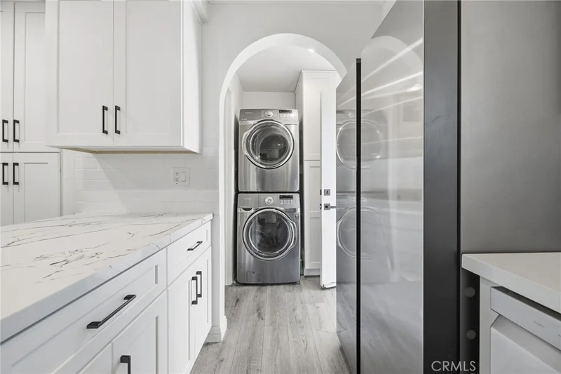COMPLETELY RENOVATED TURNKEY HOME WITH DIRECT 2 CAR GARAGE ACCESS AND IN UNIT LAUNDRY. This beautifully remodeled Tustin Place residence has been extensively upgraded and renovated. The brand new gourmet kitchen is the centerpiece of the home, featuring all new custom cabinetry with soft close drawers and doors, quartz countertops, a full custom tile backsplash, stainless steel appliances, and new modern recessed lighting with updated wiring. Home also has highly sought after in unit laundry for double stacked washer and dryer and custom built cabintery allowing for plenty of extra storage. The flooring has been completely redone throughout the entire home, creating a seamless, modern look from top to bottom. Additional interior upgrades include fresh neutral paint, dual pane windows, custom crown molding, and new baseboards. The electrical panel has been upgraded along with new wiring and recessed lighting throughout. Major improvements also include a new water heater, new toilets, and updated vanities and shower. One of the most desirable features is the rare direct access private 2 car garage, complete with a new door, motor, and newer epoxied flooring. The entire row of garage exteriors throughout the community has also been fully redone, enhancing curb appeal and long term value. Lightly lived in for only two years since completion of the renovation.
