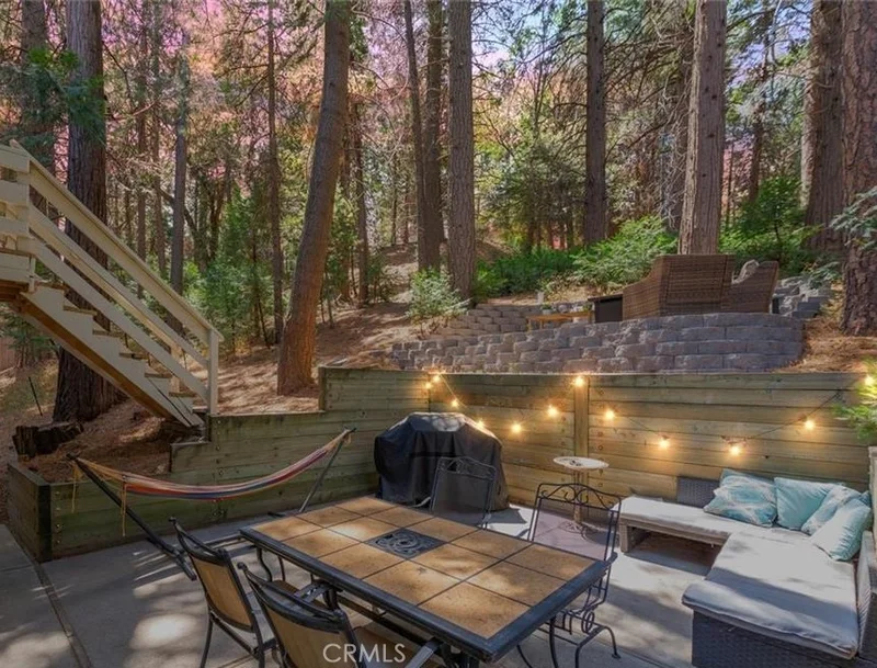 Furnished and ready for immediate enjoyment. Modern mountain living meets cozy cabin charm in this beautifully remodeled, one-of-a-kind designer home. Surrounded by nature, the property invites you to relax and entertain with three spacious decks and a stunning backyard featuring multiple seating areas, a fire pit, vegetable garden, BBQ grill, and even a pizza oven. It is the perfect setting for year-round gatherings under the pines. Highlights and Layout: - Versatile Living Spaces: Designed with flexibility in mind, each level offers its own entrance, making this home ideal for multigenerational living, a growing family, or an income-producing rental. Income Potential: The property was previously approved and permitted to host up to 10 Airbnb guests. - Lower Level: Includes a bedroom, full bathroom, and a large storage room with the potential to serve as a kitchenette. - Main Level: Showcases an open-concept layout with an oversized dream kitchen, expansive living room with a wood-burning fireplace, exposed beam ceilings, a bathroom, and a laundry room. - Upper Level: Offers two more bedrooms, a full bathroom, and a theater/game room to ensure space and privacy for everyone. Modern Comforts and Upgrades: -Premium Amenities: Stay comfortable with mini-split A/C units, high-speed fiber-optic internet wiring, and a backup generator. -Recent Improvements: Upgrades include granite countertops, updated appliances and sinks, fresh interior and exterior paint, and a new retaining wall. -Convenience: Includes off-street parking for 3 to 4 cars, extensive build-up storage, and comes furnished per the seller's inventory list. The Mountain Lifestyle -Location: Ideally located near hiking and biking trails, shopping, and schools. -Proximity: Just minutes from Lake Arrowhead, Arrowhead Village, Blue Jay, and SkyPark at Santa’s Village. -Easy Access: Quick access to Highway 18 for easy trips to the ski slopes. This is more than a home, it is a mountain lifestyle.
