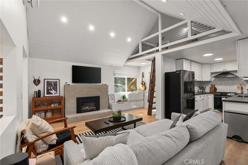 This is great personal getaway and an amazing investment property as it is a very active vacation rental. Beautifully renovated one-bedroom, one loft, two-bathroom cabin embodies a designer-inspired ambiance that effortlessly blends contemporary comfort with the warmth of nature, making it the ultimate haven for both relaxation and adventure. With the large downstairs bedroom, open living room and additional loft, this cabin accommodates up to 6 guests and is perfect for family gatherings, fun-filled weekends with friends or continue to use as a short term rental - income property. As you step inside, you’ll be greeted by a bright and inviting living room that exudes charm, featuring all-new finishes, contemporary cabinetry, new flooring and brand new kitchen. The cabin has a large deck to enjoy summer al-fresco dining and gatherings and a place to set your eyes on as you watch the snow fall on winter days snuggled up by the warm fireplace. This space is more than just a cabin; it’s an experience waiting to unfold. Whether you’re cozying up for a night in, hosting friends, or exploring the lucrative potential of an vacation rental, this cabin is designed for creating lasting memories. Centrally located in the highly sought-after Lake Arrowhead area, you’ll enjoy unparalleled access to local attractions, breathtaking scenic views, and a plethora of outdoor activities. Notable upgrades include a newer roof, updated electrical wiring and panel, replaced plumbing, beautiful new cabinetry, and elegantly redesigned kitchen, bathrooms and finishes. Your Twin Peaks & Lake Arrowhead adventure awaits! Please note - the cabin has been continuously booked for STR!