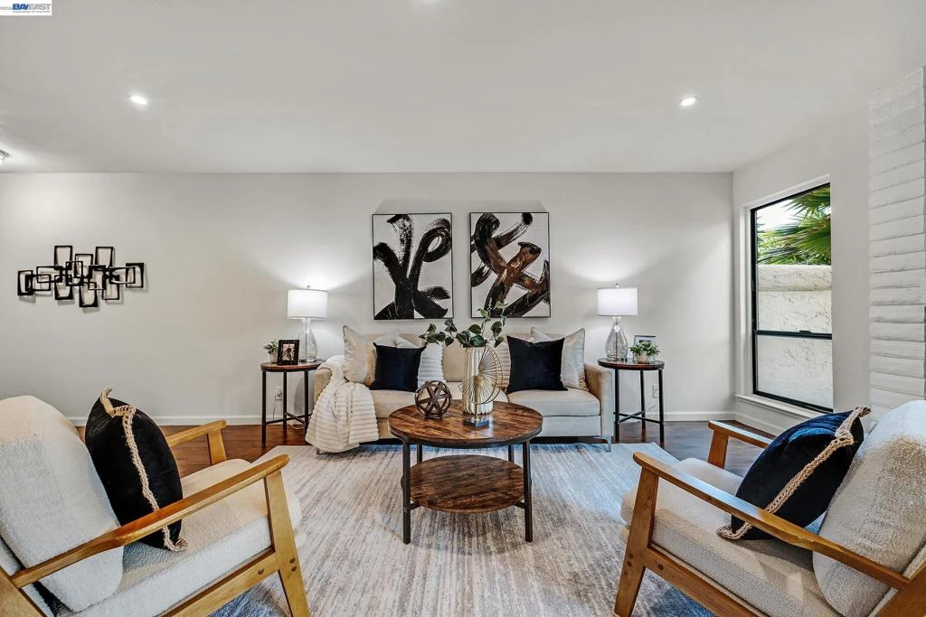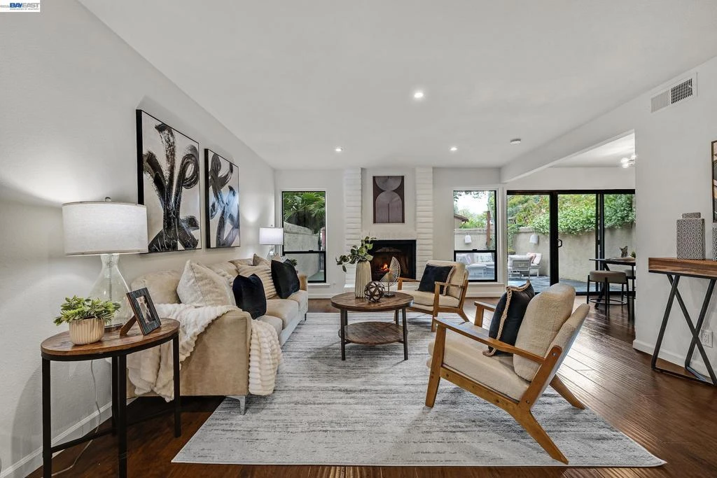 Discover this stylish townhome in the heart of Union City! The spacious living room features a cozy fireplace and expansive windows, while the dining area offers a sliding door leading to a private backyard patio with direct access to the pool, spa, & clubhouse. Perfect for entertaining, it truly feels like living in a resort! The updated kitchen has modern cabinetry, quartz countertops, & stainless-steel appliances. Upstairs, spacious Primary Suite is filled with light, opening to a private balcony, featuring mirrored closet doors. 2 additional spacious bedrooms overlook pool and spa; one offers dual closets while the other features a charming window seat. Notable upgrades include new carpets, beautiful wood laminate flooring, updated bathrooms, new interior paint, new lighting, and updated hardware, home is move-in ready. Enjoy an insulated garage with storage cabinets. The patio has pavers unless mature trees that creates a seamless indoor-outdoor vibe, while also low maintenance. Located in a quiet, vibrant community. Walking distance to great schools, parks & the Library. The home offers unparalleled access to the Dumbarton Bridge, I-880, and BART for seamless Bay Area commuting and airport travel. Residents enjoy premier convenience with top shopping, dining, just minutes.
