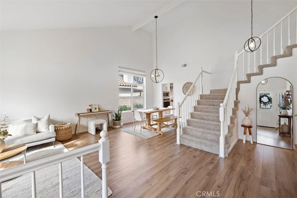 Presenting a beautifully maintained home in the highly desirable Mountain View Park neighborhood of Upland. This spacious 2,229 sq. ft. residence features 4 bedrooms and 2.5 bathrooms, offering an ideal blend of comfort and functionality. Recent upgrades include a modern kitchen with shaker-style cabinetry, quartz countertops, recessed lighting, laminate flooring, dual-pane vinyl windows, and an updated front door with leaded glass. The open floor plan is filled with natural light, creating a bright and inviting atmosphere throughout the home. The expansive kitchen flows seamlessly into the family room, highlighted by a stylish fireplace with a custom mantel and tile surround—perfect for relaxing or entertaining. The living room boasts vaulted ceilings, large windows, and a dining area that enhances the sense of openness. The main level also includes convenient direct garage access, a powder room, and an indoor laundry area. Upstairs, you’ll find three generously sized secondary bedrooms, a full bathroom, and an oversized primary suite featuring a walk-in closet, soaking tub, large walk-in shower, and dual-sink vanity. Step outside to a private backyard designed for enjoyment, complete with a spacious concrete patio, aluminum patio cover, lush lawn, and tasteful landscaping—ideal for gatherings or quiet evenings at home. Move-in ready and thoughtfully updated, this home offers space, style, and comfort for modern living. Residents of the Mountain View Park community have access to pools, BBQ areas, tennis courts, parks and beautiful grass areas.