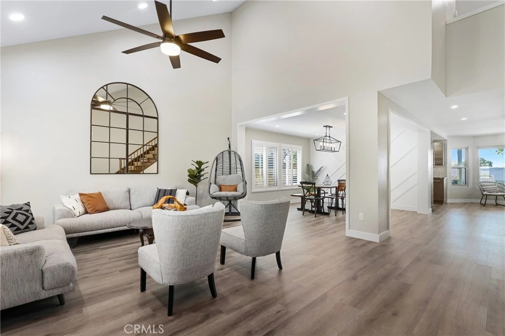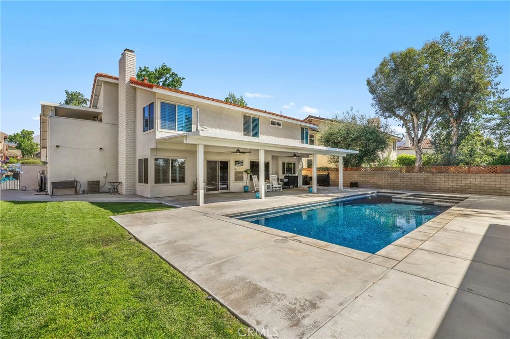Nestled in a quiet, highly desirable neighborhood of Upland, this beautifully upgraded pool home offers the perfect blend of comfort, style, and functionality. From the moment you arrive, the stunning curb appeal, spacious 3-car garage, and wide driveway—complete with RV potential—set the tone for what awaits inside. Step through the front double door entry to soaring vaulted cathedral ceilings and an inviting formal living and dining area, filled with natural light and enhanced by updated lighting fixtures and ceiling fans throughout. The main level showcases attractive luxury vinyl flooring and a thoughtfully designed floor plan, including a charmingly updated guest bathroom. At the heart of the home is the upgraded kitchen, featuring stainless steel appliances, a built-in refrigerator and freezer, a cozy breakfast nook, and a convenient built-in buffet counter offering abundant storage. The kitchen flows seamlessly into the family room, where a warm gas fireplace and custom built-in desks create a perfect space for relaxing or working from home. Both rooms overlook the serene backyard, creating a true indoor-outdoor connection. The backyard is a private retreat, complete with a beautifully updated pool and concrete decking, two covered patio areas, a lush lawn, mature fruit trees, and plenty of space for entertaining or unwinding in peace. Upstairs, the oversized primary suite offers a luxurious escape with its own gas fireplace, generous closet space, and an updated en-suite bathroom featuring dual sinks, a large walk-in shower, and a separate soaking tub. Three additional bedrooms and a remodeled bathroom complete the upper level. Additional highlights include owned solar panels to help power the central HVAC system and pool equipment, adding efficiency and long-term savings. Conveniently located with easy access to the 210, and close to a wide variety of shopping, dining, and entertainment options, this exceptional home truly has it all. Don’t miss the opportunity to make this stunning property your own.