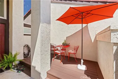Citrus Pointe at the Orchards is a commuters delight! Uplands private modern community is in the ideal spot for accessing the freeways, the metrolink and close to the heart of Uplands downtown active lifestyle. This three story town home has the BEST location in the complex. As an end unit, there is only one shared neighbor, views of the mountains, two car garage, adjacent to the pool, clubhouse and lots of parking nearby. Showcasing a downstairs patio with a Mediterranean entrance it opens to a downstairs room with a ceiling fan, a closet and a half bath. (No other unit boasts this feature in the ENTIRE community). Gorgeous bamboo hardwood flooring in the family room, recessed lighting, quartz kitchen counter tops, stainless steel appliances and a custom built peninsula with a hidden and accessible built-in butcher block. The home has upgraded all floor, contemporary light fixtures and clean cabinetry throughout. The Master bath has beautiful modern tile flooring, dual vanity, new dark cabinetry and a view of the distant mountains. The secondary master has earth toned tiles and a clean quartz bath vanity. The 2 car ATTACHED garage has new recessed lighting, tank-less water heater, soft water system, over head storage racks, custom cabinetry and high grade epoxy flooring. The tri-level is designed for privacy and convenience for the busy life style and near the historical part of Upland that captures the ambiance of it all.