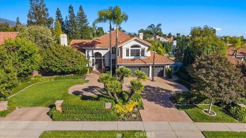 It doesn't get any better than this! This is the development's crown jewel, a statement home built by JM Peters on prestigious Euclid Avenue in North Upland. This home offers a brilliant floor plan, offering open and expansive spaces. As you approach the home, you will be impressed by how far back it sits off the street. There is a circular driveway that can accommodate four or more vehicles. The entire presentation of the front of the house exudes beauty and luxury. Enter through the double doors to find soaring ceilings and lots of windows that allow for natural light. The home is open and bright in every room. The formal living and dining rooms are perfect for special occasions. However, as in most homes, the kitchen is the heartbeat of the house. There you will find modern finishes, high-end appliances, and an open and inviting area that really creates a great room effect. The first level also includes a home office/library with custom built-ins. Additionally, there is a downstairs, second primary suite that is ideal for a nanny, granny, or guests. Upstairs, the primary suite is luxurious! It is very spacious and feels like you have found your own private retreat. It offers a blend of modern luxury and timeless calm. The elegant details and tranquil views invite you to slow down and savor the life you have created. The secondary bedrooms and baths are also lovely and spacious. The game room is perfect for a friendly game of pool, a home gym, or a teen's gathering space. When stepping outside, you will find a resort-inspired backyard. Lush and mature landscaping and elegant appointments frame it. The sparkling pool and spa will make summer days fun for all. The lush and expansive grass area is the perfect place for al fresco dining and outdoor entertaining. Located at the foothills of Mt. Baldy and next to the prestigious Euclid Avenue walking path, outdoor activities are at your doorstep. You are also close to the Colonies shopping center, where you can find restaurants, a variety of retail stores, and access to the 210 freeway. This location is perfect for commuters and has no negative influence from freeway noise. You must hurry to see this home. It is a one-of-a-kind, exceptional residence. A home like this rarely graces the market. This is the opportunity for the person who recognizes something extraordinary and takes action to make it theirs. Don't wait!