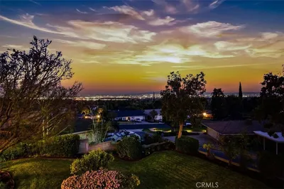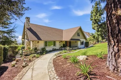Welcome to this stunning 5-bedroom, 3-bathroom mid-century modern jewel located in the highly desirable community of San Antonio Heights, showcasing breathtaking city light views from every south-facing window. This home perfectly blends timeless architecture with modern updates. From the moment you arrive, you’ll be captivated by the exceptional curb appeal, featuring lush rolling lawns, majestic trees, and mature landscaping. Step inside to a dramatic two-story wood-clad curved entry with an elegant spiral staircase that sets the tone for the home’s exceptional character. To the left of the entry, you’ll find the sophisticated formal living room complete with wall to wall slumpstone fireplace and walnut mantle, immediately adjacent to the formal dining room with walnut paneling and grand view of the valley below—ideal for enteraining. The family room features a striking rock fireplace and flows seamlessly into the updated kitchen, creating a bright, open-concept layout. The kitchen boasts quartz countertops, stainless steel appliances, and timeless walnut cabinetry. Two expansive sliding glass doors flood the space with natural light and provide stunning views of the backyard and city lights beyond. Additional highlights on the main level include a conveniently located bedroom/office and bathroom for guests and a separate indoor laundry room with laundry chute from upstairs for ease and functionality. Throughout the home, you’ll appreciate the blend of natural wood and stone elements, including terrazzo flooring, walnut paneling, luxury vinyl flooring, and textured designer carpeting, all complemented by a light, neutral color palette. Recent upgrades include new dual-pane windows and updated fixtures throughout the kitchen and bathrooms. Upstairs, the remaining bedrooms offer comfort and privacy, including a spacious primary suite with a balcony spanning the length of the home, showcasing spectacular views. The backyard is equally impressive, offering lush green grass, mature landscaping, and more incredible views—perfectly enjoyed from both the yard and the full-length balcony above. Located within the boundaries of award-winning North Upland schools, this home offers a rare opportunity to own a truly distinctive property with unmatched views, style, and location.