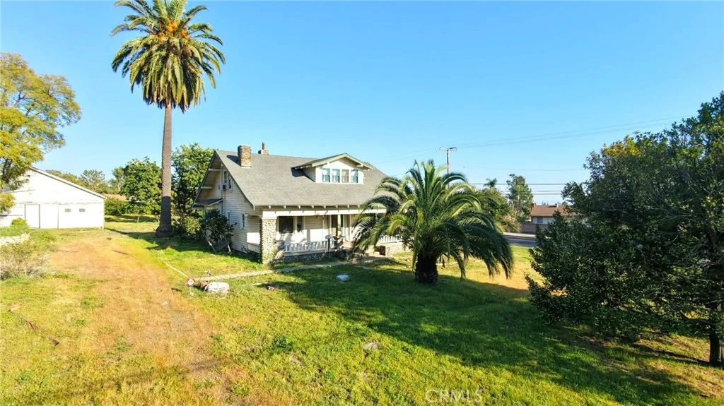 Single two story Craftsman Bungalow home constructed in 1912 on an over 1 acre of fully flat all usable corner lot land with plenty of room for ADU, or sub-divide for development. Upland house. Located in highly desired part of San Antonio Heights Community with mountain view and other expensive homes. The home has a covered porch with large columns and natural stone and it is classified as an historic home with historic benefits for homeowner. The main level of the home offers a spacious living room with stone fireplace and built-in bookcase, family room, and good size kitchen with individual laundry room. Large bedroom with window seat and bath, sunroom, study or 3rd bedroom. Upstairs has approximately 800 square feet that can be used an oversized bedroom with a large bathroom and many closet spaces. The front yard, back yard , side yard are surrounded with many mature fruit trees with fruits from Oranges, Avocado, Grapefruit, white Sapote, Persimmon, Loquat trees and 2 driveways. Also there is a detached garage big enough as a workshop or park the cars or convert it to a ADU. Has many potential to build and make this a dream home or homes. One of the rare find in Upland with this type of big size land.