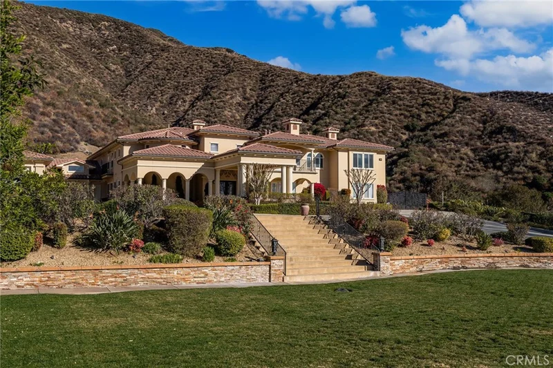 Welcome to an exceptional custom-built estate in the prestigious enclave of San Antonio Heights, where luxury, privacy, and breathtaking views converge in a truly rare offering. Beyond private gates, a grand wrap-around driveway framed by stately pillar archways creates a striking sense of arrival, surrounded by expansive, manicured grounds offering complete seclusion. This impressive three-story residence, including a fully finished basement, is thoughtfully designed and served by an elevator accessing all levels. Inside, a dramatic foyer showcases refined architectural details and crown molding throughout. Every bedroom features its own en suite bathroom and walk-in closet, providing exceptional comfort and privacy. Dual primary suites, each with a fireplace, offer luxurious retreats, while additional fireplaces in the formal living room, family room, and dining room bring the total to five fireplaces throughout the home. The chef’s kitchen is a showpiece, appointed with high-end appliances, generous workspace, a wine refrigerator, and seamless flow to the fully equipped outdoor kitchen, ideal for entertaining. Additional features include a whole-house water softener system and a Generac generator that powers the entire home, ensuring year-round comfort and peace of mind. The finished basement is an entertainer’s paradise with a private theater, full bar, and game room. Upstairs, enjoy a fully equipped fitness room with steam shower, a spacious loft, and an elegant extended hallway enhancing the home’s open flow and sophistication. Security and functionality are exceptional, featuring a full surveillance and alarm system with license plate readers. The property offers a garage accommodating up to nine vehicles, along with additional RV parking on the side yard. The backyard is an entertainer’s dream, showcasing nearly two acres of usable land with a resort-style swimming pool, 62-foot waterslide, jacuzzi, fruit trees, and meticulously groomed landscaping illuminated by over 500 Malibu lights, creating stunning ambiance day and night. Situated on approximately four acres with no possibility of future development behind or alongside, the estate offers permanent privacy and panoramic city views. A truly rare opportunity to experience luxury living in one of San Antonio Heights’ most coveted locations.