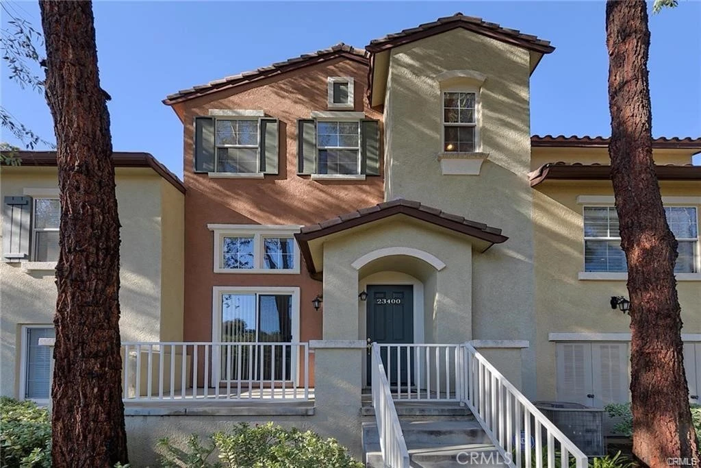 Enjoy elevated living in the highly desirable Valencia Village Walk community! Perfectly positioned in one of the most desirable locations in the complex. This beautifully upgraded 2-bedroom, 2.5-bath tri-level townhouse offers scenic views of the landscaped hillside with no front neighbors, creating a rare sense of privacy and tranquility. Step inside to a bright & inviting interior filled with natural light and tasteful upgrades, including travertine flooring, plush upgraded carpeting, mirrored wardrobes, and a spacious walk-in closet. The stylish gourmet kitchen features granite countertops, a full tile backsplash, stainless steel appliances, recessed lighting, elegant white cabinetry with decorative hardware, and a convenient breakfast bar—perfect for both everyday living and entertaining. The kitchen flows effortlessly into the dining and living areas, where large windows showcase lush greenery, and the welcoming living room features a raised hearth fireplace and sliding doors leading to your private patio. Ideal for relaxing evenings or weekend gatherings. A thoughtfully designed mid-level study nook with a built-in desk and cabinetry provides the perfect work-from-home space. Upstairs, both spacious bedrooms feature ceiling fans and private en-suite bathrooms with granite countertops, offering comfort and privacy for residents and guests alike. The upstairs laundry room adds everyday convenience. Additional highlights include direct access to a full-size two-car garage with extra storage space. Residents of Village Walk enjoy resort-style amenities, including a sparkling pool, relaxing spa, and direct access to scenic Paseo walking and biking trails. Ideally located just minutes from the I-5 freeway, award-winning schools, premier shopping, dining, and entertainment, this home offers the perfect blend of comfort, convenience, and lifestyle. Move-in ready and available soon—don’t miss the opportunity to live in one of Valencia’s most sought-after communities!