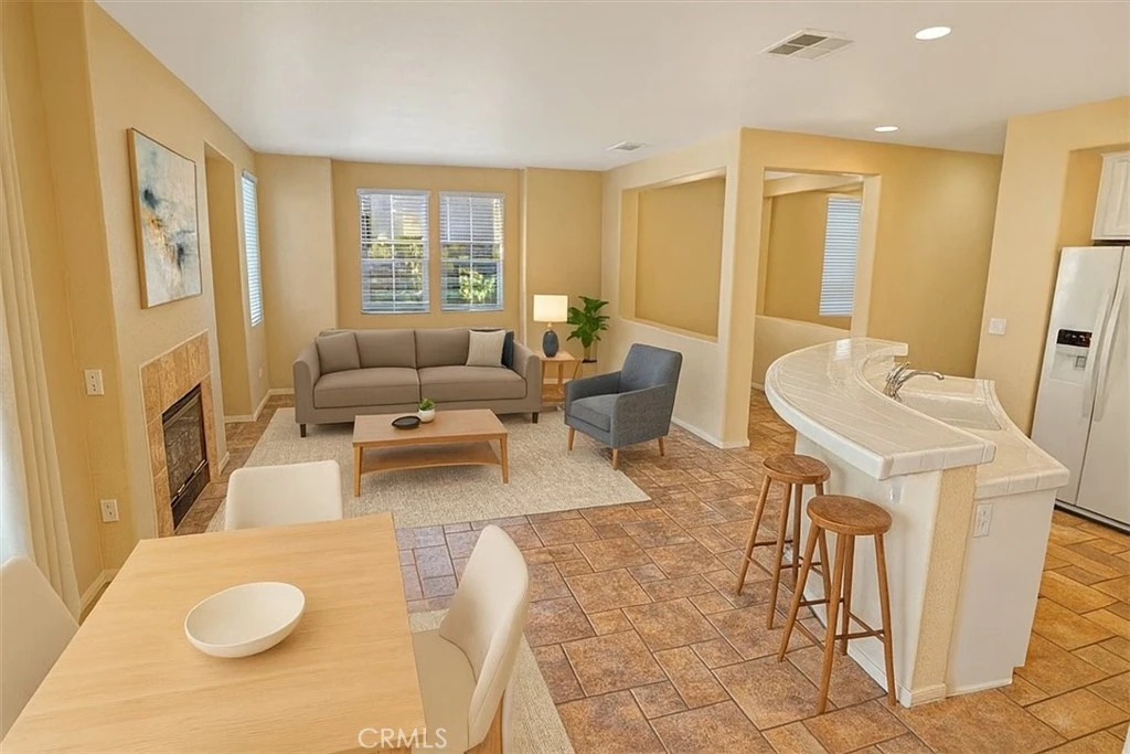 Valencia Cornerstone Town Home End Unit! No Mello Roos! 3 Bedroom + Loft area, with open floor plan! Eligible for FHA Spot Approval for low down payment financing. Call agent for details. Brand new carpet. Tile Flooring begins at Entry and continues throughout the first floor. Living Room has a cozy fireplace, and media niche. Dining Room with recessed lights has sliding glass doors to the patio and backyard. Kitchen with tile counters, cabinets with under cabinet lighting, gas cooktop, breakfast bar and walk-In pantry. Bedroom Two is located on the First Floor with a Full Guest Bathroom across the hall. Inside Laundry Room with storage cabinets. Upstairs Landing/Loft can be used so many ways. Primary Bedroom Suite with large walk-in closet. Primary Bathroom with dual sink vanity, walk-in shower, soaking tub and water closet. Bedroom Three with Full en-suite bathroom. Lushly landscaped backyard with wrap around patio. Attached two car garage. Newer A/C and FAU system. CORNERSTONE PERKS: Only 3 units per building; No Mello Roos; Lots of parking for guests, less density that most developments; 2 swimming pools, spas, BBQs, picnic area, playground,. Easy access to Santa Clarita paseo and trail system. Close to parks, shopping, restaurants and schools.