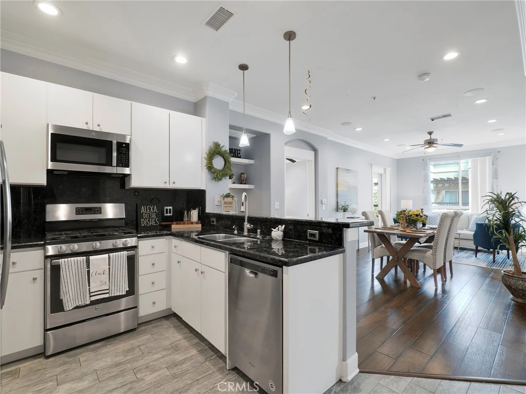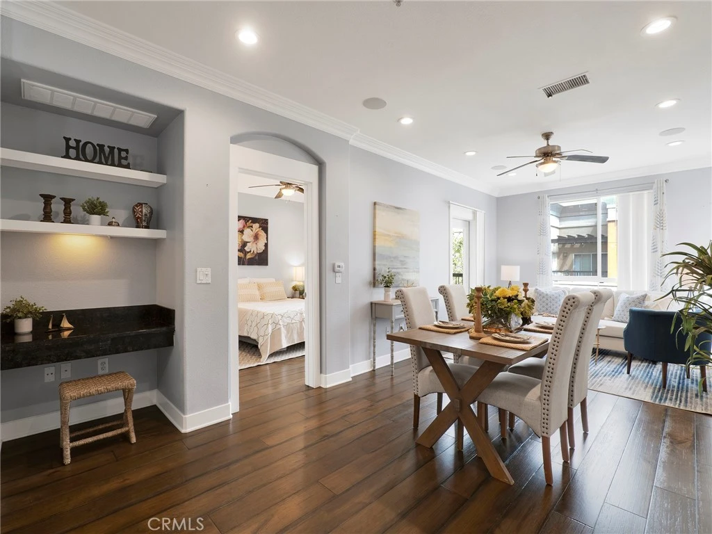 Welcome to this beautifully maintained 2-bedroom, 2-bathroom condo located in the heart of Valencia’s highly desirable Town Center community. This thoughtfully designed home offers an ideal layout with bedrooms on opposite wings, providing excellent privacy for residents or guests. Step inside to a warm and inviting living space where a well-appointed kitchen seamlessly flows into the living room—perfect for both everyday living and entertaining. The kitchen is designed for functionality and comfort, creating a welcoming hub of the home. Recessed lighting throughout enhances the bright, modern feel. Enjoy your own private outdoor patio—an ideal spot for morning coffee or evening relaxation. Additional highlights include two designated covered parking spaces conveniently located side-by-side. Situated just moments from premier shopping, dining, and entertainment, this location offers unbeatable convenience with easy access to both the 5 and 14 freeways. A fantastic opportunity to own in one of Santa Clarita’s most walkable and vibrant areas.